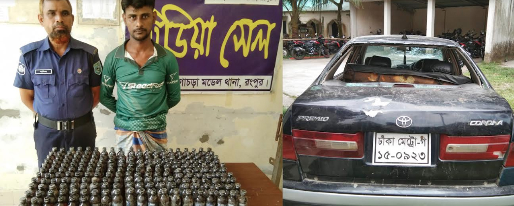 গঙ্গাচড়ায় দু’শত ফেন্সিডিল ও বহনকারী কারসহ মাদক ব্যবসায়ী আটক
