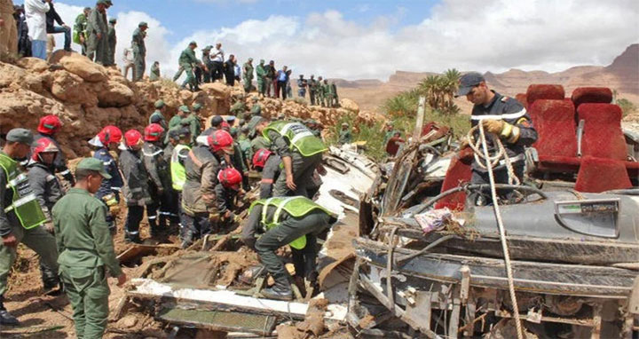 মরক্কোর বাণিজ্যিক রাজধানী ক্যাসাব্লাঙ্কার পূর্বাঞ্চলে বুধবার ভয়াবহ বাস দুর্ঘটনায় ২৩ জন নিহত ও ৩৬ জন আহত হয়েছেন। দেশটিতে সাম্প্রতিক বছরগুলোতে এ ধরনের মর্মান্তিক দুর্ঘটনার ক্ষেত্রে এটি ছিল অন্যতম। এক স্বাস্থ্য কর্মকর্তা একথা জানিয়েছেন। এক প্রতিবেদনে এমন তথ্য জানিয়েছে বার্তা সংস্থা এএফপি।স্থানীয় কর্তৃপক্ষ জানায়, বুধবার সকালে খুরিবগা প্রদেশে সড়কের মোড় ঘোরার সময় বাসটি উল্টে যায়। এ ঘটনায় প্রাথমিকভাবে ১৫ জনের মৃত্যুর কথা জানানো হলেও পরে আঞ্চলিক স্বাস্থ্য পরিচালক রোচদি কাদের তা সংশোধন করে ২৩ জন নিহত ও ৩৬ জন আহত হওয়ার কথা জানান। খবরে বলা হয়, বাসটি ক্যাসাব্লাঙ্কা ও আইত আত্তাব অঞ্চলের মধ্যে চলছিল। অঞ্চলটি হাই এটলাস পর্বতের বেনি মেল্লাল শহরের কাছে অবস্থিত। আহতদের খুরিবগার একটি হাসপাতালে ভর্তি করা হয়েছে এবং দুর্ঘটনার ব্যাপারে তদন্ত শুরু করেছেন কর্মকর্তারা। দুর্বল যোগাযোগ ব্যবস্থার কারণে মরক্কো ও উত্তর আফ্রিকার অন্য দেশগুলোতে প্রায় এ ধরনের ভয়াবহ সড়ক দুর্ঘটনা ঘটে থাকে। জাতীয় সড়ক নিরাপত্তা সংস্থা জানায়, মরক্কোতে সড়ক দুর্ঘটনায় প্রতি বছর গড়ে ৩,৫০০ জন নিহত ও ১২,০০০ আহত হন। এ হিসাব অনুযায়ী, দেশটিতে সড়ক দুর্ঘটনায় প্রতিদিন গড়ে ১০ জন প্রাণ হারান।