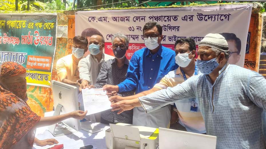 রাজধানীসহ সারাদেশে প্রতিদিন হাজার হাজার মানুষ স্বতঃস্ফূর্তভাবে করোনাভাইরাসের প্রতিষেধক টিকা গ্রহণ করছেন। সুরক্ষা অ্যাপের মাধ্যমে আবেদন করে টিকাকার্ড সঙ্গে নিয়ে নির্ধারিত টিকাদান কেন্দ্রে যাচ্ছেন টিকাগ্রহণে ইচ্ছুক নারী-পুরুষরা। শহর-গ্রাম নির্বিশেষে লম্বা সিরিয়ালে দাঁড়িয়ে টিকা নিচ্ছেন তারা। কিন্তু প্রযুক্তি ও শিক্ষাগত যোগ্যতার অভাবে বিপাকে অনেক সাধারণ মানুষ। তাই সাধারণ মানুষকে করোনা ভাইরাসের টিকা গ্রহণ করতে ওয়ার্ডের সকল নাগরিককে ভ্যাকসিন এর আওতায় আনতে ৩১ নম্বর ওয়ার্ড কাউন্সিলর শেখ মোঃ আলমগীরের উদ্যোগে ফ্রী ভ্যাকসিন নিবন্ধন ও টিকা কার্ড প্রদানের কার্যক্রমের আয়োজন করে কে এম আজম লেন পঞ্চায়েত কমিটি।