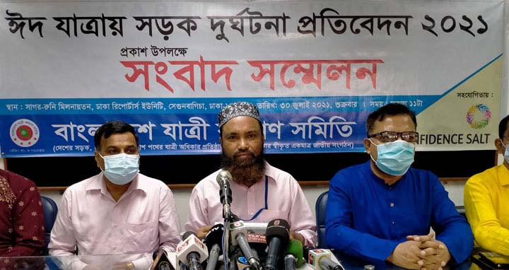 ঈদুল আজহার আগে-পরে ১৫ দিনে (১৪-২৮ জুলাই) দেশে সড়ক, রেল ও নৌপথে ২৬২টি দুর্ঘটনায় ২৯৫ জন নিহত হয়েছেন। এ সময়ে এসব দুর্ঘটনায় আহত হয়েছেন আরও ৪৮৮ জন। এদের মধ্যে সবচেয়ে বেশি প্রাণ গেছে মোটরসাইকেল দুর্ঘটনায়। তবে স্বল্পসময়ে পরিবহন চালু করায় এবার গত ছয় বছরের মধ্যে সবচেয়ে বেশি হতাহতের ঘটনা ঘটেছে। শুক্রবার (৩০ জুলাই) ঢাকা রিপোর্টার্স ইউনিটিতে ‘ঈদযাত্রায় সড়ক দুর্ঘটনা প্রতিবেদন-২০২১’ উপলক্ষে আয়োজিত এক সংবাদ সম্মেলনে এসব তথ্য জানায় বাংলাদেশ যাত্রী কল্যাণ সমিতি। অনলাইন, প্রিন্ট ও ইলেকট্রনিক গণমাধ্যমের তথ্যের ভিত্তিতে এ প্রতিবেদনটি করেছে সংগঠনটি। সংবাদ সম্মেলনে জানানো হয়, ঈদের শুরুর দিন ১৪ জুলাই থেকে ঈদ শেষে কর্মস্থলে ফেরা পর্যন্ত (২৮ জুলাই) ১৫ দিনে মোট ২৪০টি সড়ক দুর্ঘটনায় ২৭৩ জন নিহত ও ৪৪৭ জন আহত হয়েছেন। একই সময়ে রেলপথে ৯টি দুর্ঘটনায় ১১ জন নিহত ও পাঁচজন আহত হয়েছেন, নৌপথে ১৩টি দুর্ঘটনায় ১১ জন নিহত ও ৩৬ জন আহত হয়েছেন, আরও ২১ জন নিখোঁজ হওয়ার ঘটনা ঘটেছে। তবে ২৩ জুলাই থেকে কঠোর লকডাউন শুরু হওয়ার পর থেকে ২৫ জুলাই থেকে সড়কে দুর্ঘটনায় প্রাণহানি কমতে থাকে। এবারের ঈদুল আজহায় লকডাউনের কারণে মানুষের যাতায়াত সীমিত হলেও স্বল্পসময়ের জন্য গণপরিবহন চালু করায় সড়কে ব্যক্তিগত গাড়ি, মাইক্রোবাস, মোটরসাইকেল, অটোরিকশা-ব্যাটারিচালিত রিকশা, ট্রাক-পিকআপ ও কাভার্ডভ্যানে গাদাগাদি করে মানুষ গ্রামে ফিরেছে। এতে গত ছয় বছরের মধ্যে সবচেয়ে বেশি হতাহতের ঘটনা ঘটেছে। বিগত ছয় বছরে শুধু ঈদুল আজহায় মোট এক হাজার ২৮৮টি দুর্ঘটনায় এক হাজার ৫০০ নিহত ও চার হাজার ৩৫৬ জন আহত হয়েছেন। সংগঠনটির প্রতিবেদনে বলা হয়েছে, বরাবরের মতো এবারও দুর্ঘটনায় শীর্ষে রয়েছে মোটরসাইকেল। এরারের ঈদে মোট ৮৭টি মোটরসাইকেল দুর্ঘটনায় ৯ জন নিহত এবং ৫৯ জন আহত হয়েছেন। যা মোট সড়ক দুর্ঘটনার ৩৬.২৫ শতাংশ এবং আহতের ১৩.১৯ শতাংশ। এ সময় সড়কে দুর্ঘটনায় আক্রান্ত হয়েছেন ১০৬ জন চালক, ১৯ জন পরিবহন শ্রমিক, ৬৪ জন পথচারী, ৩৮ জন নারী, ৩১ জন শিশু, ১২ জন শিক্ষার্থী, তিনজন সাংবাদিক, পাঁচজন আইনশৃঙ্খলা রক্ষাকারী বাহিনীর সদস্য, ১২ জন শিক্ষক, ছয়জন বিভিন্ন রাজনৈতিক দলের নেতাকর্মী এবং একজন প্রকৌশলীর পরিচয় মিলেছে। এর মধ্যে নিহত হয়েছেন দুইজন পুলিশ সদস্য, একজন সেনাবাহিনীর সদস্য, একজন বিজিবি, ২৭ জন নারী, ১৭ শিশু, নয়জন শিক্ষার্থী, নয়জন শিক্ষক, ৮৭ জন চালক, ১৬ জন পরিবহন শ্রমিক, ৫৩ জন পথচারী, তিনজন রাজনৈতিক দলের নেতাকর্মী। সংঘটিত দুর্ঘটনা বিশ্লেষণে দেখা যায়, মোট যানবাহনের ২৮.৪৮ শতাংশ মোটরসাইকেল, ২৮.৭৮ শতাংশ ট্রাক-পিকআপ কাভার্ডভ্যান-লরি, ৭.৪১ শতাংশ কার-মাইক্রো-জিপ, ৮.৬০ শতাংশ নছিমন-করিমন-ট্রাক্টর-লেগুনা-মাহিন্দ্