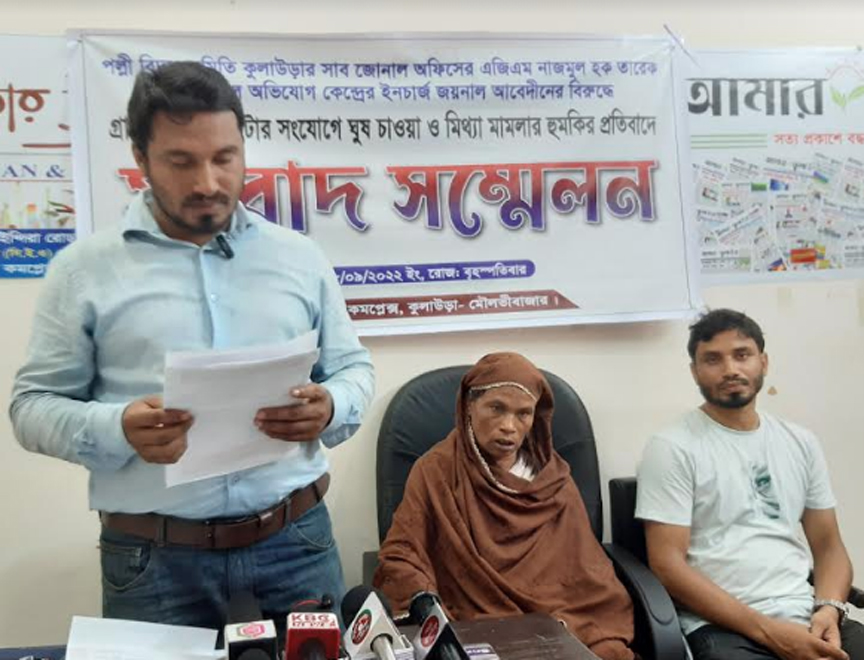 ৮ সেপ্টেম্বর দুপুরে কুলাউড়া মুক্তিযোদ্ধা কমপ্লেক্স ভবনে সংবাদ সম্মেলনে লিখিত বক্তব্যে আজিজুল হায়দার বলেন, তিনি কুলাউড়া পল্লী বিদ্যুৎ সমিতির একজন গ্রাহক। তাদের বাড়ি থেকে পল্লী বিদ্যুতের মেইল লাইনের দূরত্ব প্রায় ৩০০ ফুট দূরে। গত দুই বছর পূর্বে বরমচাল পল্লী বিদ্যুৎ অফিসে খুঁটির জন্য আবেদন করি। আবেদন করার পর পল্লী বিদ্যুৎ এর অফিসের এক লাইনম্যান আমাকে জানায় খুঁটি বসাতে হলে তাকে ১০ হাজার টাকা দিতে হবে। আমি লাইনম্যানকে ১০ হাজার টাকা পরিশোধ করি। কিছুদিন পর এই লাইনম্যান অন্যত্র বদলী হয়ে চলে যায়। প্রায় ৪ মাস পূর্বে কুলাউড়া পল্লী বিদ্যুৎ অফিসের আওতাধীন বরমচাল অভিযোগ কেন্দ্রের ইনর্চাজ জয়নাল আবেদীন আমার বাড়িতে এসে বলেন, ১০ হাজার টাকা দিলে সে বিদ্যুৎ এর খুঁটি বসিয়ে দিবে। পরে আমি ও আমার ভাই ইনর্চাজ জয়নাল আবেদীনকে ৫ হাজার টাকা প্রদান করি। বাকি টাকা খুঁটি বসানোর পর দেওয়ার কথা ছিল। জয়নাল আবেদীন পরবর্তীতে খুঁটি না বসিয়ে বাকি ৫ হাজার টাকা দেয়ার জন্য আমাদের চাপ দিতে থাকে। আমরা তাকে বলেছিলাম ৫ হাজার টাকা না দিয়ে বিষয়টি আমরা কুলাউড়া অফিসে জানাবো। তখন সে আমাদেরকে বিদ্যুৎ লাইন থেকে মিটার কাটার হুমকি দেয়। জুলাই-আগস্টের এক মাসের বিদ্যুৎ বিল বিলম্ব ফিসহ ১৪২৯/- টাকা পরিশোধ করা সত্ত্বেও পল্লী বিদ্যুৎ বরমচাল অভিযোগ কেন্দ্রের জয়নাল আবেদীন তাঁর লোকজনদের নিয়ে আমাদের বিদ্যুৎ লাইন গত ২৮ আগস্ট বিচ্ছিন্ন করে দেয়। ঘটনার দিন জয়নাল আবেদীনসহ তার লোকজন আমার বসত ঘরে উপস্থিত হয়ে বিদ্যুৎ বিল কেন পরিশোধ করা হয়নি জিজ্ঞেস করলে আমার মাতা মাহমুদা খানম জয়নাল আবেদীনকে বলেন, আমার ছেলে বাজারে গিয়েছে বিদ্যুৎ বিল পরিশোধ করার জন্য। তখন কথা না শুনে জয়নাল আবেদীন রাগান্বিত হয়ে বিদ্যুৎ লাইন কাটতে গেলে আমার মাতা এতে বাধা দেন। এসময় জয়নাল আবেদীন আমার মাতাকে ধাক্কা দিয়ে মাটিতে ফেলে দেয়। ধস্তাধস্তির একপর্যায়ে জয়নাল আবেদীন তার হাতে থাকা প্লাস দিয়ে আমার মাতার কনিষ্ট আঙ্গুলে আঘাত করে জখম করেন। এছাড়া জয়নাল আবেদীন আমার বড়ভাই লুৎফুর রহমানকেও কিলঘুষি মেরে আহত করে। পরে আমার মাতা ও বড় ভাই লুৎফুর রহমান কুলাউড়া হাসপাতালে চিকিৎসা নেন। আমার মাতা একজন ডায়বেটিস, হার্ট ও পেসারের রোগী। এদিকে বিল পরিশোধ করলেও এই জেরে ১২ দিন ধরে বিদ্যুৎ সংযোগ পুনঃস্থাপন না করায় আমার অসুস্থ মাতা মাহমুদা খানম অতি গরমে কষ্টের মধ্যে আছেন। বিদ্যুৎ না থাকায় আমার মায়ের পায়ের হাঁড় ক্ষয় ও কোমরের হাঁড় ক্ষয়ের জন্য থেরাপি এবং শ্বাস কষ্টের জন্য নেবুলাইজার (গ্যাস) দিতে পারছিনা। ব্যক্তিগত আক্রোশের কারণে একজন গ্রাহকের বিদ্যুৎ বিল পরিশোধ করার পরও কোন আইনের বলে গত ১২ দিন ধরে আমাদের ব