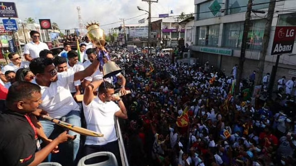 এমন সকাল অনেক দিন দেখেনি কলম্বো। চরম আর্থিক ও রাজনৈতিক সঙ্কটে ডুবে থাকা দেশটির প্রতিটি ভোর আসে অনিশ্চয়তার আঁধার নিয়ে। জীবনযুদ্ধে টিকে থাকার নতুন অধ্যায় শুরু হয় প্রতিটি সকালে। তবে মঙ্গলবার সকাল একটু ব্যতিক্রম। সঙ্কট ও সমস্যার নিত্য টানাপোড়েনের সঙ্গে এ দিন যোগ হয় আনন্দের উপলক্ষ। এশিয়া কাপ জিতে জাতীয় ক্রিকেট দল দেশে ফিরেছে বলে কথা! ক্রিকেট মাঠের বীরদের বরণ করে নেওয়ার পাশাপাশি ভালো লাগার পরশে মাখামাখি হওয়ার সুযোগ আসে সাধারণ মানুষের জন্যও। এশিয়া কাপে চ্যাম্পিয়ন শ্রীলঙ্কা ক্রিকেট দল দুবাই থেকে দেশে ফেরে মঙ্গলবার সকালে। আফগানিস্তানের বিপক্ষে বাজেভাবে হেরে টুর্নামেন্ট শুরু করা দলটিই পরে অভাবনীয়ভাবে একের পর এক জয়ে শেষ পর্যন্ত জিতে নিয়ে ট্রফি। স্বাধীনতার পর সবচেয়ে বড় সঙ্কটের মধ্যে থাকা জাঁতি অনেক দিন পর পায় উচ্ছ্বাসের উপলক্ষ। ভারত-পাকিস্তান-বাংলাদেশের মতো শ্রীলঙ্কাও ক্রিকেট পাগল জাতি। উৎসবের আবহেই তারা বরণ করে নেন বিজয়ী ক্রিকেটারদের। মঙ্গলবার (১৩ সেপ্টেম্বর) ভোরে কলম্বোর বন্দরনায়েকে আন্তর্জাতিক বিমানবন্দরে অবতরণ করে ক্রিকেটারদের বয়ে আনা বিমান। এক দফা সংবর্ধণা দেওয়া হয় সেখানেই। ফুলের মালায় বরণ করে নেওয়া হয় ক্রিকেটারদের। ক্রীড়া মন্ত্রণালয়, শ্রীলঙ্কা ক্রিকেট ও জাতীয় দলের স্পন্সর প্রতিষ্ঠানের পক্ষ থেকে সেখানে ছিল আনন্দ আয়োজন। এরপর ছাদখোলা দোতলা বাসে শহর প্রদক্ষিণের পালা। কলম্বো শহর থেকে বিমান বন্দর বেশ দূরে। তবে বিমান বন্দর থেকে বের হতেই মানুষের ভালোবাসার উষ্ণতা টের পেতে থাকেন ক্রিকেটাররা। শত শত মানুষ রাস্তার দুই পাশে দাঁড়িয়ে অভিনন্দন জানান ক্রিকেটারদের। ক্রমে শহরের দিকে এগোতেই সংখ্যাটি শত শত থেকে রূপ নেয় হাজার হাজার মানুষের জোয়ারে। ঢোল আর বাদ্য বাজিয়ে চলতে থাকে ক্রিকেটারদের বয়ে নেওয়া বাস। রাস্তার দুই পাশে হাত নাড়িয়ে, পতাকা উড়িয়ে, চিৎকার আর স্লোগানে ক্রিকেটারদের প্রতি ভালোবাসার প্রকাশ করেন শ্রীলঙ্কার জনতা। কলম্বো শহরের নানা প্রান্ত প্রদক্ষিণ করে ক্রিকেটারদের এই বিজয় মিছিল। এমন সাত সকালেও ভীড় জমে যায় শহরের পথে পথে। কোথাও কোথাও বাস থামিয়ে ক্রিকেটাররা সরাসরি কথা বলেন মানুষের সঙ্গে। হাত নেড়ে, উড়ন্ত চুম্বনে, ব্যাটে আর পতাকায় অটোগ্রাফ দিয়ে তারা এঁকে দেন ভালোবাসার চিহ্ন। এভাবেই ক্রিকেট আর জীবন মিশে যায় একসঙ্গে। ক্রিকেট মাঠের ২২ গজ হয়ে ওঠে জীবনের আঙিনাও। সব দুঃখ-কষ্ট, ব্যথা, যাতনা কিছুক্ষণের জন্য এক পাশে সরিয়ে ক্লান্ত-শ্রান্ত মানুষ মেতে ওঠে হাসি-আনন্দ-মজায়। বিপর্যস্ত এক জাঁতি লড়াইয়ের প্রেরণা পায় নতুন করে।