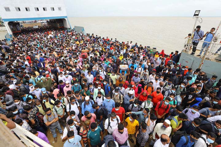 দেশের দক্ষিণ-পশ্চিমাঞ্চল থেকে আসা যাত্রীরা রাজবাড়ীর দৌলতদিয়া ঘাটে পৌঁছেছেন হেঁটে, অটোরিকশায় কিংবা মাহেন্দ্রতে চড়ে। যাত্রীবোঝাই ফেরি ছেড়েছে এ ঘাট থেকে। ঢাকা-আরিচা মহাসড়কেও ছিল ঢাকামুখী যাত্রী, ব্যক্তিগত ও ছোটগাড়ির চাপ। যানবাহন পরিবর্তন করে, পণ্যবাহী যানের ছাদে করে বা হেঁটে তাদের ঢাকার পথে রওনা দিতে দেখা গেছে।