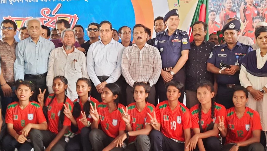 সাফজয়ী বাংলাদেশ দলের ময়মনসিংহের কলসিন্দুর গ্রামের ৮ ফুটবল কন্যাকে উষ্ণ অভ্যর্থনায় বরণ করে নিয়েছে জেলার সর্বসাধারণ। বৃহস্পতিবার দুপুরে সানজিদা-মারিয়ারা সড়কপথে ঢাকা থেকে ময়মনসিংহ এসে পৌঁছালে ঢাকা-ময়মনসিংহ মহাসড়কের চুরখাই এলাকায় তাদের ফুলের মালা পরিয়ে বরণ করে নেওয়া হয়। পরে ছাদখোলা গাড়িতে শোভাযাত্রাসহ ময়মনসিংহ নগরীর প্রধান প্রধান সড়ক প্রদক্ষিণ শেষে সার্কিট হাউজে আসেন ফুটবল কন্যারা। এ সময় রাস্তার দুই পাশে দাঁড়িয়ে তাদেরকে অভিবাদন জানায় নগরবাসি। এরপর বিকেলে শিল্পাচার্য জয়নুল আবদীন পার্কের বৈশাখী মঞ্চে জেলা প্রশাসনের সহযোগিতায় জেলা ক্রীড়া সংস্থা ও ফুটবল অ্যাসোসিয়শনের উদ্যোগে সানজিদা, মারিয়া, শিউলি আজিম, মারজিয়া আক্তার, শামসুন্নাহার, তহুরা, সাজেদা ও শামসুন্নাহার জুনিয়রদের সংবর্ধনা অনুষ্ঠানের আয়োজন করা হয়। তারা সার্কিট হাউজ থেকে সুসজ্জিত ঘোড়ার গাড়ী করে বৈশাখী মঞ্চে হাজির হয়। ময়মনসিংহের বিভাগীয় কমিশনার শফিকুর রেজা বিশ্বাসের সভাপতিত্বে অনুষ্ঠানে গৃহায়ন ও গণপূর্ত প্রতিমন্ত্রী শরীফ আহমদ এমপি, রেঞ্জ ডিআইজি দেবাদাস ভট্টাচার্য, জেলা আওয়ামী লীগের সভাপতি অ্যাডভোকেট জহিরুল হক খোকা, ক্রীড়া সংস্থার সাধারণ সম্পাদক এহতেশামূল আলম বক্তব্য রাখেন। প্রধান অতিথির বক্তব্যে গণপূর্ত প্রতিমন্ত্রী শরীফ আহমদ এমপি সাফ শিরোপা জয়ের মতো অনন্য কৃতিত্ব ও সাফল্যের জন্য ফুটবলারদের ধন্যবাদ জানান। তিনি বলেন, এ কৃতিত্ব সারা বাংলাদেশের। একইসঙ্গে ময়মনসিংহ তথা ধোবাউড়ার সর্বস্তরের জনগনের জন্য এটি গর্বের ব্যাপার। সাফ চ্যাম্পিয়নশিপে অংশগ্রহণকারী ৮ জনই ময়মনসিংহের ধোবাউড়ার কলসিন্দুর গ্রামের গর্বিত সন্তান। ভবিষতে তারা বাংলাদেশের নারী ফুটবলে আরো সাফল্য বয়ে আনবে বলেও তিনি আশাবাদ ব্যক্ত করেন। অনুষ্ঠানে মারিয়া ও সানজিদা সাফ জয়ের অনুভূতি প্রকাশ করে বলেন, আমাদের এ বিজয় সকলের। এ বিজয়ের পিছনে আমাদের বিদ্যালয়ের যারা প্রশিক্ষণ দিয়ে গড়ে তুলেছেন তাদের প্রতি কৃতজ্ঞতা জানাই। ভবিষতে আমরা সবার মুখে হাসি ফোঁটাতে চাই। ক্রীড়াক্ষেত্রে আরো সাফল্য বয়ে নিয়ে আসবো। এজন্য সবার প্রতি দোয়া কামনা করছি। অনুষ্ঠানে ফুটবল কন্যাদের প্রত্যেককে ক্রেস্ট, গৃহায়ন প্রতিমন্ত্রীর পক্ষ থেকে দুই লাখ টাকা, জেলা ক্রীড়া সংস্থা এক লাখ টাকা এবং প্রান্ত স্প্যাশালাইজড হাসপাতালের পক্ষ থেকে এক লাখ টাকা প্রদান করা হয়। এর আগে সকালে ঢাকা থেকে আসার পথে ভালুকা ও ত্রিশালে সানজিদাদের পৃথক পৃথক সংবর্ধনা দেওয়া হয়। এ সময় ভালুকার সংসদ সদস্য কাজিম উদ্দিন ধনু ও ত্রিশালের সংসদ সদস্য আলহাজ রুহুল আমিন মাদানী ফুটবলারদের ফুল দিয়ে বরণ করে নেয়। এ সময