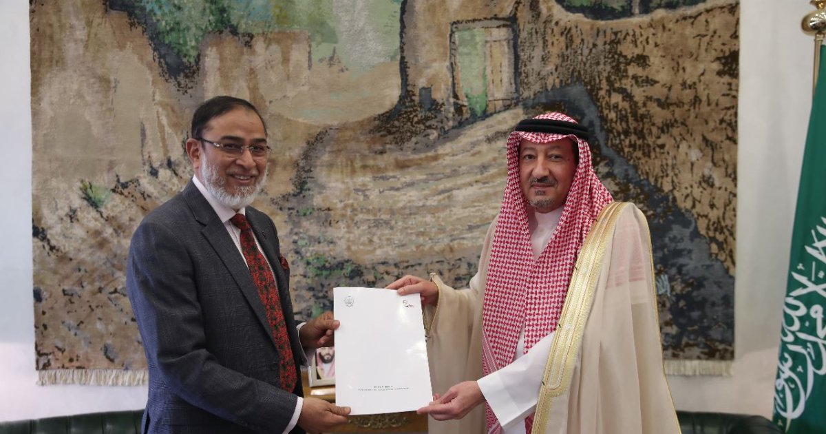 সৌদি আরবের পররাষ্ট্র মন্ত্রণালয়ের উপমন্ত্রী প্রকৌশলী ওয়ালিদ বিন আবদুল করিম আল-খুরাইজির কাছে বৃহস্পতিবার তার কার্যালয়ে চিঠি হস্তান্তর করেন রাষ্ট্রদূত।
