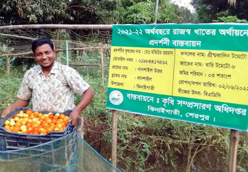বাংলাদেশে সাধারণত শীতকালে টমেটোর চাষ হয়। কিন্তু বাংলাদেশ কৃষি গবেষণা ইনস্টিটিউট (বারি) গ্রীষ্মকালীন টমেটোর জাত উদ্ভাবন করেছে। এসময় বাজারে টমেটোর চাহিদা বেশি থাকায় কৃষকরা ভালো দাম পাচ্ছে। এদিকে আর্থিকভাবেও লাভবান হচ্ছে এবং চাষেও বাড়ছে আগ্রহ। ঝিনাইগাতী উপজেলার উত্তর ধানশাইল গ্রামের কৃষক মোঃ মতিউর রহমান বলেন, উপজেলা কৃষি বিভাগের পরামর্শে আমি চলতি মৌসুমে ৩ শতাংশ জমিতে বারি টমেটো-৮ জাত চাষ করেছি। জুন মাসের প্রথম দিকে টমেটোর চারা রোপণ করেছিলাম। চলতি মাসের শেষের দিকে টমেটো পেকেছে এবং ফলনও ভালো হয়েছে। প্রথম চাষ করেই আশানুরূপ ফলন হওয়ায় আগামী বছর এক একর জমিতে টমেটো চাষাবাদের পরিকল্পনা রয়েছে।