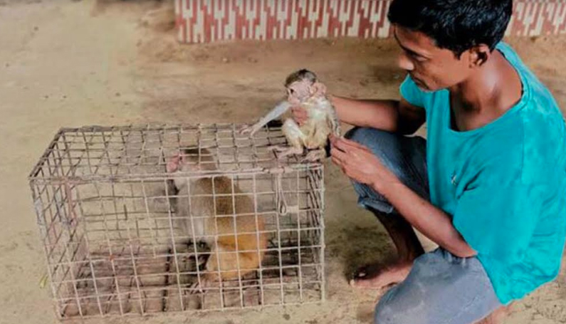 শ্রীমঙ্গলে বাচ্চাসহ বাদামি বানর উদ্ধার