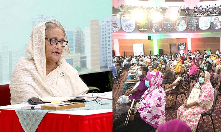 প্রধানমন্ত্রী শেখ হাসিনা বলেছেন, জাতির পিতার এই বাংলাদেশে প্রত্যেকটি মানুষ সুন্দর ও উন্নত জীবন পাবে। জাতির পিতা বেঁচে থাকলে আরও আগেই সেটা পেত। তবে আমাদের দুর্ভাগ্য তাকে আমাদের কাছ থেকে কেড়ে নেয়ার ফলে সেটা পেলাম না। তবে আমরা তার সেই কাজই করে যাচ্ছি। জাতির পিতার এই দেশে কেউ গৃহহীন থাকবে না। পিছিয়ে থাকবে না। মঙ্গলবার (৩রা আগষ্ট) মুজিববর্ষ উপলক্ষে ‘সরকারি কর্মকর্তা-কর্মচারীদের জন্য ঢাকায় নির্মিত দুই হাজার ৪৭৪টি ফ্ল্যাট সংবলিত ৫টি আবাসন প্রকল্প’, ‘মাদারীপুরে নির্মিত সমন্বিত অফিস ভবন উদ্বোধন’ এবং ‘জাতীয় গৃহায়ণ কর্তৃপক্ষের নিজ-অর্থায়নে বস্তিবাসীদের জন্য মিরপুরে নির্মিত ভাড়াভিত্তিক ৩০০টি ফ্ল্যাট’ হস্তান্তর অনুষ্ঠানে প্রধানমন্ত্রী এসব কথা বলেন। রাজধানীর বঙ্গবন্ধু আন্তর্জাতিক সম্মেলন কেন্দ্রে গৃহায়ণ ও গণপূর্ত মন্ত্রণালয় আয়োজিত এ অনুষ্ঠানে গণভবন থেকে ভার্চুয়ালি যুক্ত হন প্রধানমন্ত্রী। প্রধানমন্ত্রী বলেন, জাতির পিতা তার জীবন উৎসর্গ করেছেন দেশের জন্য। তিনি সবসময় একটি কথাই বলতেন, ‘আমার জীবনের একমাত্র কামনা বাংলাদেশের মানুষ অন্ন পাবে, বস্ত্র পাবে, তারা উন্নত জীবনের অধিকারী হবে।’ এই বাংলাদেশের মানুষ রোগে-শোকে ছিল। শিক্ষার আলো পেত না। তাদের ভাগ্যোন্নয়ন করাই ছিল বঙ্গবন্ধুর মূল লক্ষ্য। এজন্য ছাত্রজীবন থেকেই বঙ্গবন্ধু সংগ্রাম করেছেন। রাষ্ট্রভাষা বাংলার দাবি থেকে তিনি ধাপে ধাপে জাতিকে মুক্ত ও স্বাধীন করেছেন। আর এই দাবির সংগ্রামের মধ্যেই তাকে জেলে নিয়েছে, নির্যাতন করেছে, হত্যা করতে চেয়েছে। শেখ হাসিনা বলেন, তিনি স্বাধীন বাংলাদেশে ভূমিহীনদের ঘর করে দেয়ার ব্যবস্থা করেন। সাড়ে তিন বছর একটা রাষ্ট্রের জন্য কম সময়। তখন তো একটা প্রদেশ ছিল, সেটা দেশে উন্নীত করা ও তার গঠন করা; এটা তিনি করে গেছেন। কিছু বেইমান-মুনাফেকের জন্য তার ক্ষুধা ও দারিদ্র্যমুক্ত বাংলাদেশ গঠন সম্ভব হয়নি। তিনি বলেন, জাতির পিতার হত্যাক-ের সময় আমরা দেশের বাইরে ছিলাম। আমার দল ও বাংলাদেশের মানুষের ভালোবাসায় ফিরে আসি। আমার আসার পথ সহজ ছিল না। তৎকালীন ক্ষমতা দখলকারীরা নানা বাধা সৃষ্টি করেছে। আজকে আমরা ক্ষমতায়। সরকারে থেকে তৃণমূল মানুষের ভাগ্য পরিবর্তন, তাদের জীবনমান উন্নত করা এবং সংবিধানের আলোকের মানুষের মৌলিক চাহিদা পূরণ করে যাচ্ছি। সরকার প্রধান বলেন, সরকারি কর্মকর্তাদের দিয়ে আমরা কাজ করাবো, তাদের ভালো-মন্দও তো দেখতে হবে। আজিমপুর সরকারি কলোনিতে গ্যাস ছিল না, আমিই আব্বাকে বলে সে গ্যাসের লাইন করে দিয়েছিলাম। আমি সরকার গঠন করে উদ্যোগ নিয়েছিলাম, সকলকে ফ্ল্যাট করে দেব, সুন্দর পরিবেশে থাকার ব্যবস্থা করে দেব, যাতে কর্মকর্তারা ভালোভাবে কাজ করতে পারেন। তিনি ব