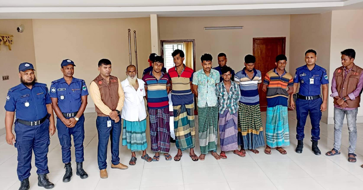 আটক ব্যক্তিরা হচ্ছেন- মাগুরার আজমপুর গ্রামের লোকমান মুন্সীর ছেলে মো. কাজল হোসেন (২৭), ফরিদপুরের সালথার ভর কামদিয়া গ্রামের মৃত সাদেক খানের তিন ছেলে মো. মাসুদ খান (৩৪), মো. মাসুম খান (৩২) ও মো. বাচ্চু খান (৩০), ফরিদপুরের নগরকান্দার ছাগলদিঘী গ্রামের মো.মজিবর রহমানের ছেলে মো. শাহিন শেখ ওরফে রাকিব (২৫) এবং ফরিদপুরের বোয়ালমারীর হরিহরনগর গ্রামের মো. সিদ্দিক মোল্লার দুই ছেলে সবুজ মোল্লা (২৪) ও সিদ্দিক মোল্লা (৬৫)।