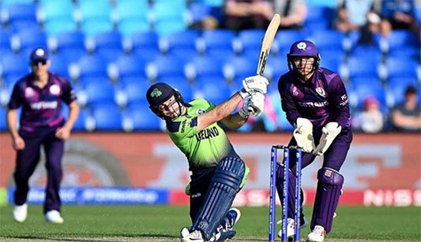 কার্টিস ক্যাম্ফারের অলরাউন্ড নৈপুন্যে টি-টোয়েন্টি বিশ্বকাপের সুপার টুয়েলভে খেলার আশা বাঁচিয়ে রেখেছে আয়ারল্যান্ড। বুধবার ‘বি’ গ্রুপে প্রথম রাউন্ডে নিজেদের দ্বিতীয় ম্যাচে আয়ারল্যান্ড ৬ উইকেটের ব্যবধানে হারিয়েছে স্কটল্যান্ডকে। প্রথমে ব্যাট করে ৫ উইকেটে ১৭৬ রান করে স্কটিশরা। জবাবে ক্যাম্ফারের ৩২ বলে অপরাজিত ৭২ রানে ১ ওভার বাকী থাকতেই জয়ের স্বাদ পায় আয়ারল্যান্ড। বল হাতেও ৯ রানে ২ উইকেট নিয়ে ম্যাচ সেরাও হয়েছেন ক্যাম্ফার। এই জয়ে ২ খেলায় ১ জয়-হারে ২ পয়েন্ট নিয়ে টেবিলের তৃতীয়স্থানে থাকলো আয়ারল্যান্ড। একই চিত্র স্কটল্যান্ডের। রান রেটে এগিয়ে তৃতীয়স্থানে তারা। এতে সুপার টুয়েলভে খেলার আশা বেঁচে থাকলো দু’দলেররই। হোবার্টে বেলেরিভ ওভালে টস জিতে প্রথমে ব্যাট করতে নামে স্কটল্যান্ড। দলীয় ১ রানে প্রথম উইকেট হারালেও দ্বিতীয় উইকেটে ম্যাথু ক্রসকে নিয়ে ৫৯ রানের জুটি গড়েন ওপেনার মাইকেল জোনস। ক্রস ২১ বলে ২৮ রানে আউট হওয়ার পরন মিডল-অর্ডার ব্যাটারদের নিয়ে স্কটল্যান্ডকে বড় সংগ্রহ এনে দেন জোনস। তৃতীয় উইকেটে রিচার্ড বেরিংটনকে নিয়ে ৪৮ বলে দলকে ৭৭ রান উপহার দেন জোনস। বেরিংটন ৩টি চার ও ১টি ছক্কায় ২৭ বলে ৩৭ রান করে আউট হন। টি-টোয়েন্টি ক্যারিয়ারের প্রথম হাফ-সেঞ্চুরি তুলে ৮৬ রানে আউট হন জোনস। এটি তার ক্যারিয়ার ও এবারের বিশ্বকাপে এ পর্যন্ত সর্বোচ্চ ব্যক্তিগত রানের ইনিংস। শেষদিকে মাইকেল লিসেক ১৩ বলে অপরাজিত ১৭ রান করলে, ২০ ওভারে ৫ উইকেটে ১৭৬ রান তুলে স্কটল্যান্ড। জোনসের ৫৫ বলের ইনিংসে ৬টি চার ও ৪টি ছক্কা ছিলো। বল হাতে আয়ারল্যান্ডের পক্ষে সফল বোলার ছিলেন ক্যাম্ফার। ২ ওভারে ৯ রানে ২ উইকেট নেন। ১৭৭ রানের টার্গেটে ইনিংস শুরু করে নিয়মিত বিরতি দিয়ে উইকেট হারাতে থাকে আয়ারল্যান্ড। ৯ দশমিক ৩ ওভারে ৬১ রান তুলতেই ৪ উইকেট হারায় তারা। এরপরই ম্যাচের নিয়ন্ত্রন হারিয়ে ফেলে আইরিশরা। এমন অবস্থায় ম্যাচ জিততে ৬ উইকেট হাতে নিয়ে শেষ ১০ ওভারে ১১২ রান দরকার পড়ে আয়ারল্যান্ডের। চাপে পড়লেও হাল ছাড়তে চাননি ক্যাম্ফার। ছয় নম্বরে নামা জর্জ ডকরেলকে নিয়ে লড়াই শুরু করেন ক্যাম্ফার। স্কটল্যান্ডের বোলারদের উপর চাপ বাড়াতে পাল্টা আক্রমনাত্মক হয়ে উঠে ব্যাট হাতে তান্ডব চালান ক্যাম্ফার। ১১ থেকে ১৫ ওভারে ৬০ রান তুলেন ক্যাম্ফার-ডকরেল। এতে শেষ ৫ ওভারে ৫২ রান দরকার পড়ে আয়ারল্যান্ডের। পরের চার ওভারেই ৫২ রান তুলে দলের জয় নিশ্চিত করেন ক্যাম্ফার-ডকরেল। টি-টোয়েন্টিতে প্রথম হাফ-সেঞ্চুরি পাওয়া ইনিংসে ৩২ বলে ৭২ রান করেন ক্যাম্ফার। ৭টি চার ও ২টি ছক্কা মারেন তিনি। ৪টি চার ও ১টি ছক্কায় ২৭ বলে অপরাজিত ৩৯ রান করেন ডকরেল। আগামী ২১ অক্টোবর গ্রুপ পর্ব