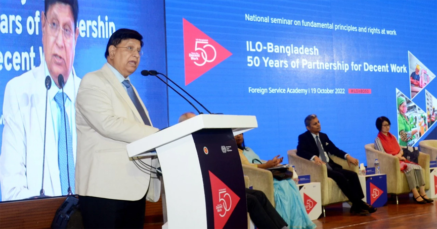 বুধবার ফরেন সার্ভিস একাডেমিতে শ্রম অধিকার, শালীন কাজ এবং সামাজিক ন্যায়বিচারের ক্ষেত্রে অগ্রগতি নিয়ে আয়োজিত ‘কাজের মৌলিক নীতি ও অধিকার’ শীর্ষক জাতীয় সেমিনারে পররাষ্ট্রমন্ত্রী এসব কথা বলেন।