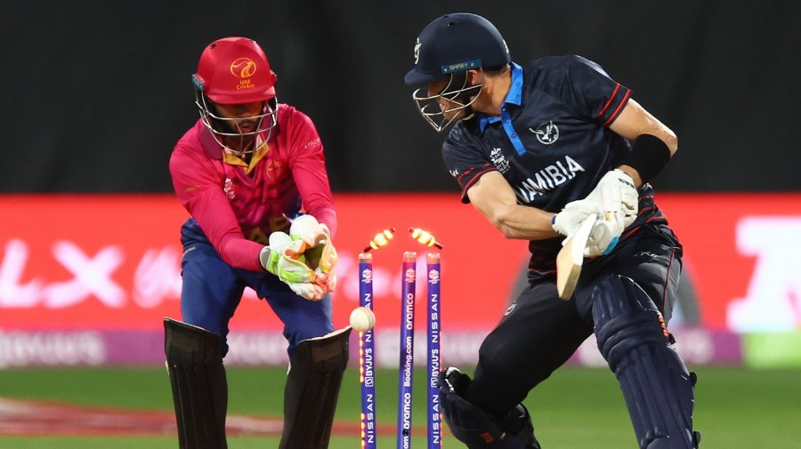 জিতলে সুপার টুয়েলভ আর হারলে বিদায়। বৃহস্পতিবার (২০ অক্টোবর) টসের মুহূর্তে নামিবিয়া অধিনায়ক গেরহার্ড এরাসমাস বলেছিলেন, ‘সব কিছু আমাদের হাতে।’ ম্যাচের পর হাড়ে হাড়ে টের পাওয়া গেলো নামিবিয়ান অধিনায়কের কথার মর্মার্থ। শুরুর ভুলে হারতে থাকা ম্যাচটায় জয়ের সম্ভাবনা তৈরি করেছিলেন ডেভিড উইসা ও রুবেন ট্রাম্পেলমান। কিন্তু শেষ ওভারে তীরে এসে ডুবেছে নামিবিয়ার তরী। সংযুক্ত আরব আমিরাতের কাছে মাত্র ৭ রানের হারে তারা টুর্নামেন্ট থেকে ছিটকে গেছে। নামিবিয়ার হারে গ্রুপ থেকে রানার্স আপ হয়ে সুপার টুয়েলভ নিশ্চিত করেছে নেদারল্যান্ডস। তাদের আগে সুপার টুয়েলভের টিকিট কাটা শ্রীলঙ্কা গ্রুপ ‘এ’ থেকে সেরা দল হয়েই পরের পর্বে যাচ্ছে। ফলে নেদারল্যান্ডস খেলবে মহাদেশীয় হেভি জায়ান্টে ভরা ভারত, পাকিস্তান, বাংলাদেশ ও দক্ষিণ আফ্রিকার সঙ্গে। শ্রীলঙ্কা খেলবে অস্ট্রেলিয়া, ইংল্যান্ড, আফগানিস্তান ও নিউজিল্যান্ডের সঙ্গে। বাংলাদেশ ২৪ অক্টোবর নিজেদের প্রথম ম্যাচে ডাচদের মুখোমুখি হবে। ১৪৯ রানের লক্ষ্যে খেলতে নামা নামিবিয়া শুরুতে কখনোই জয়ের পথে ছিল না। টপের বাজে ব্যাটিংয়ে ৬৯ রানে পড়েছে ৭ উইকেট। তখন ১২.৪ ওভারের খেলা চলছিল। তার পর ত্রাতার ভূমিকায় অবতীর্ণ হন ডেভিড উইসা ও রুবেন ট্রাম্পেলমান। বিশেষ করে উইসার বিস্ফোরক ব্যাটিং জয়ের সম্ভাবনাও তৈরি করে। তাতে ১২ বলে তাদের প্রয়োজন পড়ে ২০ রান। কিন্তু এই সময় মাত্র ১২ রানই নিতে পারে তারা। যার ব্যাটে নামিবিয়ার হঠাৎ জেগে ওঠা; সেই উইসা ১৯.৪ ওভারে ফিরে গেছেন। ফেরার আগে খেলেছেন ৩৬ বলে ৫৫ রানের অবিশ্বাস্য একটি ইনিংস। সেখানে ছিল ৩টি চার ও ৩ ছয়। অবশ্য ম্যাচটা এত দূরও আসার কথা ছিল না। আরব আমিরাতের বাজে ফিল্ডিংও অনেকাংশে দায়ী। ১৭ ওভারের শেষ বলে ডেভিড উইসা ক্যাচ তুলেছিলেন। কিন্তু ওয়াসিমের হাত ফসকে বের হয়ে যায় তা। দুর্ভাগ্যজনকভাবে তারা রানআউটের সুযোগও মিস করে এই সময়। রুবেন ট্রাম্পেলমান ২৪ বলে ২৫ রানে অপরাজিত ছিলেন। নামিবিয়া ৮ উইকেট হারিয়ে ১৪১ রান করতে পেরেছে। আইসিসি বিশ্বকাপে প্রথম জয় পাওয়া আমিরাতের হয়ে ১৭ রানে দুটি উইকেট নেন বাসিল হামিদ। ২০ রানে দুটি নেন জহুর খানও। একটি করে নিয়েছেন জুনায়েদ সিদ্দিক, মোহাম্মদ ওয়াসিম ও কার্তিক মেয়াপ্পান। শ্রীলঙ্কার কাছে হেরে যাওয়ায় তিনটি পরিবর্তন নিয়ে শুরুতে টস জিতে ব্যাটিংয়ে নামে আরব আমিরাত। ধীর গতির ব্যাটিংয়ে ৩ উইকেটে তারা ১৪৮ রানের পুঁজি দাঁড় করাতে পারে। ওপেনার মোহাম্মদ ওয়াসিমের ৪১ বলে ৫০ রান ও অধিনায়ক রিজওয়ানের ২৯ বলে অপরাজিত ৪৩ রানের ইনিংস ছিল মূল ভিত। ওয়াসিমের ইনিংসে ছিল ১টি চার ও ৩ ছয়। ব্যাট-বলে অবদান রাখায় ম্যাচসেরাও তিনি। রিজওয়ানের ইনিংস