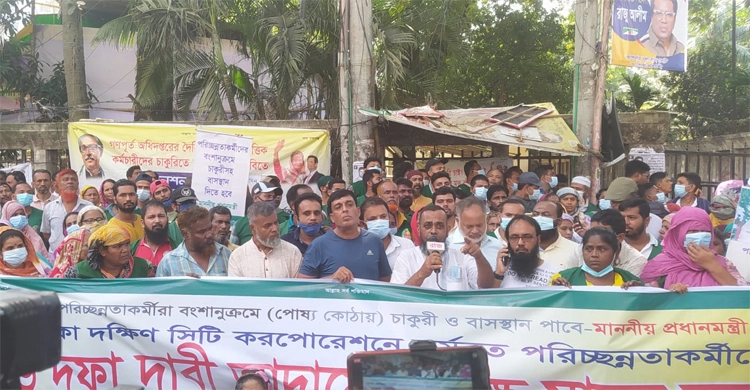 ডিএসসিসির চাকরিচ্যুত পরিচ্ছন্নতাকর্মীদের আন্দোলনে মেয়রপন্থিদের বাধা