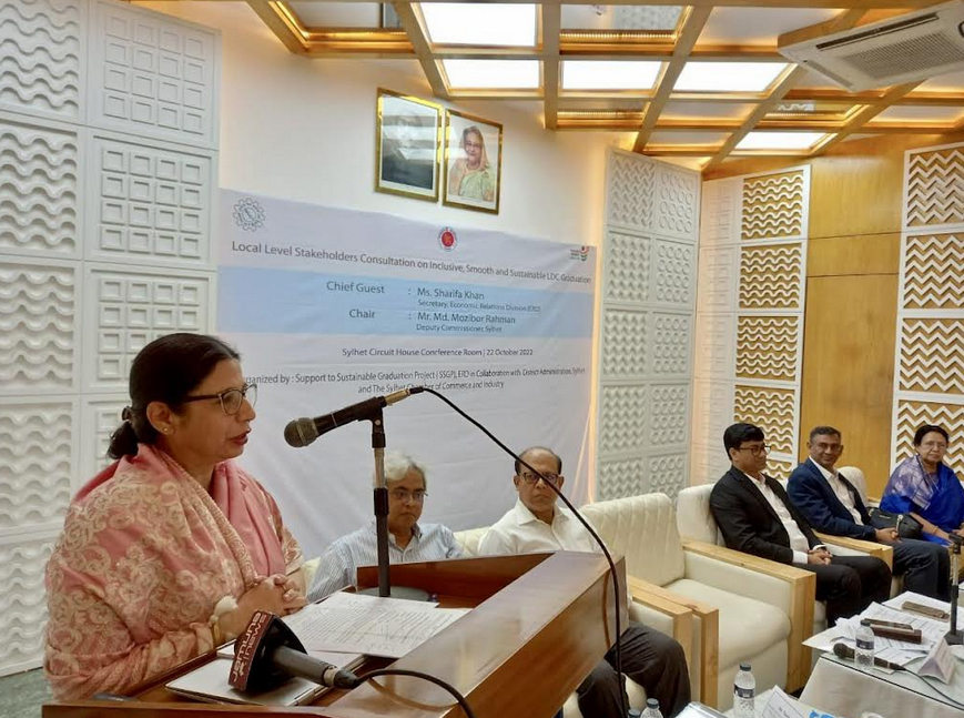 সিলেটে লোকাল লেভেল স্টেকহোল্ডারস কনসালটেশন অন ইনক্লুসিভ, স্মোথ এন্ড সাসটেইনেবল এলডিসি গ্রাজুয়েশন শীর্ষক কর্মশালা অনুষ্ঠিত