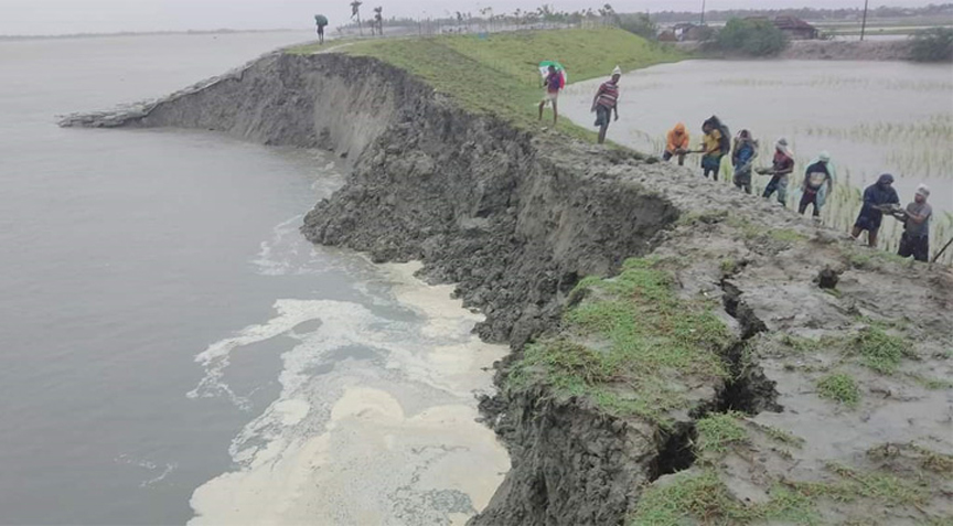 কয়রায় বেড়িবাঁধে ভাঙন, আতঙ্কে এলাকাবাসী