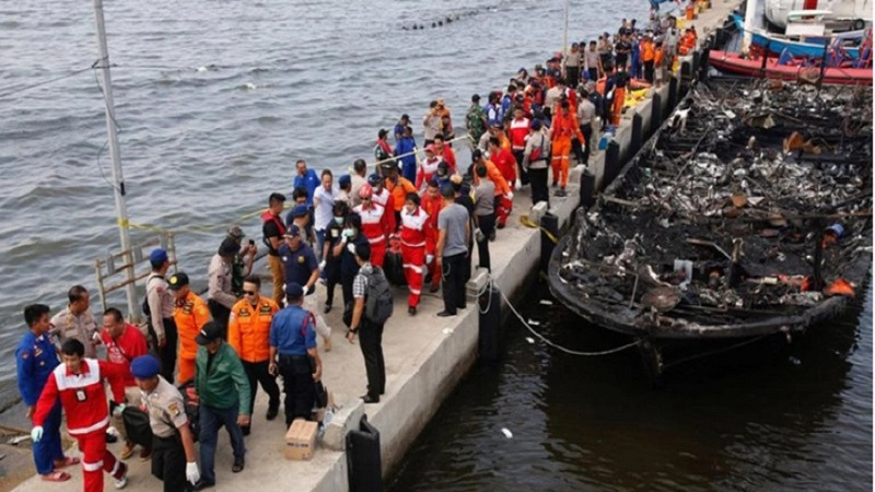 ইন্দোনেশিয়ায় নৌকায় আগুন লেগে নিহত ১৩