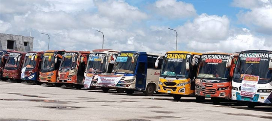 বরগুনায় বাসমালিকদের ২ দিনের বাস ধর্মঘট চলছে