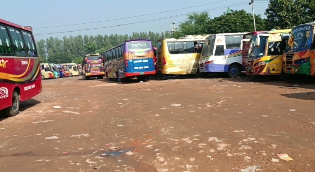 নতুন বাসস্ট্যান্ডে গিয়ে দেখা যায়, বাসগুলো টার্মিনালে সারিবদ্ধ করে রাখা হয়েছে। আর পরিবহন শ্রমিকরা কেরাম-লুডু খেলছেন।