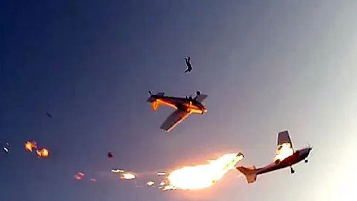 যুক্তরাষ্ট্রে মাঝ আকাশে সংঘর্ষের পর দু’টি সামরিক বিমান বিধ্বস্ত হয়েছে। মূলত মাঝ আকাশে বিমান দু’টির সংঘর্ষের পর উভয়ই মাটিতে ভেঙে পড়ে ও বিধ্বস্ত হয়। এ ঘটনায় ঠিক কতজন আহত বা নিহত হয়েছেন তা তাৎক্ষণিকভাবে জানা যায়নি। স্থানীয় সময় গত শনিবার যুক্তরাষ্ট্রের টেক্সাস অঙ্গরাজ্যের ডালাসে দ্বিতীয় বিশ্বযুদ্ধের স্মারক এয়ারশোতে এই ঘটনা ঘটে। রোববার (১৩ নভেম্বর) এক প্রতিবেদনে এই তথ্য জানিয়েছে বার্তা সংস্থা রয়টার্স এবং সংবাদমাধ্যম বিবিসি। প্রতিবেদনে বলা হয়েছে, টেক্সাস অঙ্গরাজ্যের ডালাসে দ্বিতীয় বিশ্বযুদ্ধের স্মারক এয়ারশোতে দুটি মার্কিন ভিনটেজ সামরিক বিমান মধ্য আকাশে সংঘর্ষের শিকার হয় বলে ফেডারেল কর্মকর্তারা জানিয়েছেন। পরে বিমান দু’টি বিধ্বস্ত হয় এবং মাটিতে পড়ে আগুন ধরে যায়। এই ঘটনায় কতজন আহত বা নিহত হয়েছেন তা তাৎক্ষণিকভাবে জানা যায়নি বলে জানিয়েছে রয়টার্স। বার্তা সংস্থাটি বলছে, গত শনিবার দুপুরে দ্বিতীয় বিশ্বযুদ্ধের সময়কার বোয়িং বি-১৭ ফ্লাইং ফোর্টেস বোমারু বিমান এবং একটি বেল পি-৬৩ কিংকোবরা ফাইটার বিমান ডালাস এক্সিকিউটিভ বিমানবন্দরের উইংস ওভার ডালাস এয়ারশোতে উড়ছিল বলে যুক্তরাষ্ট্রের ফেডারেল এভিয়েশন অ্যাডমিনিস্ট্রেশন (এফএএ) জানিয়েছে। পরে সেখানেই এই দুর্ঘটনা ঘটে। দুর্ঘটনার পর জরুরি কর্মীরা দুর্ঘটনাস্থলে ছুটে গেছেন বলে বিমানবন্দরের কর্মকর্তারা টুইটারে বলেছেন। তবে ওই বিমান দু’টিতে ঠিক কতজন আরোহী ছিলেন তা স্পষ্ট নয় বলে এফএএ জানিয়েছে। এদিকে মাঝ আকাশে সামরিক বিমানের মধ্যে সংঘর্ষ ও বিধ্বস্তের ঘটনার বেশ কিছু ভিডিও ফুটেজ সোশ্যাল মিডিয়ায় ছড়িয়ে পড়েছে। এতে উড্ডয়নরত অবস্থায় দু’টি বিমানের মধ্যে সংঘর্ষ এবং এরপর সেগুলোকে মাটিতে বিধ্বস্তের পর আগুনে আচ্ছন্ন হতে দেখা যায়।