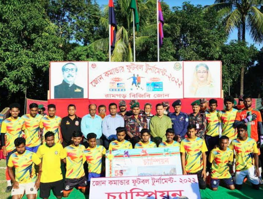 খাগড়াছড়ির রামগড়ে আয়োজিত জোন কমান্ডার ফুটবল টুর্নামেন্টের ফাইনাল খেলায় ফটিকছড়ির রহমতপুর সেতু নির্মাণ ক্রীড়া সংঘ চ্যাম্পিয়ন এবং ফ্রেন্ডস ক্লাব চা বাগান রানার্সআপ হয়েছে। ফাইনাল খেলায় টাইব্রেকারে রহমতপুর সেতু নির্মাণ ক্রীড়া সংঘ ৪-১ গোলে ফ্রেন্ডস ক্লাব চা বাগানকে পরাজিত করে। রামগড় ৪৩ বিজিবি জোন এ টুর্নামেন্টের আয়োজন করে।