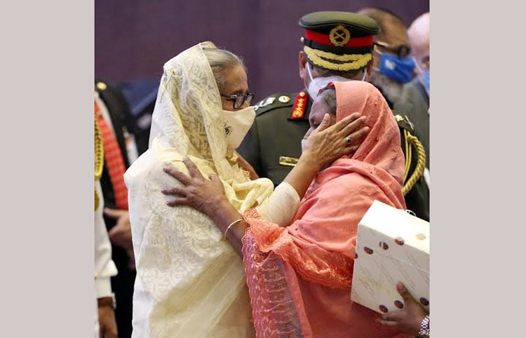 সোমবার প্রধানমন্ত্রী ঢাকা সেনানিবাসে এএফডি-২০২২ উপলক্ষে বাংলাদেশ সশস্ত্র বাহিনীর বীরত্ব পুরস্কার বিজয়ী মুক্তিযোদ্ধা এবং তাদের উত্তরাধিকারীদের সংবর্ধনা অনুষ্ঠানে বক্তব্য দেয়ার সময় এসব কথা বলেন।