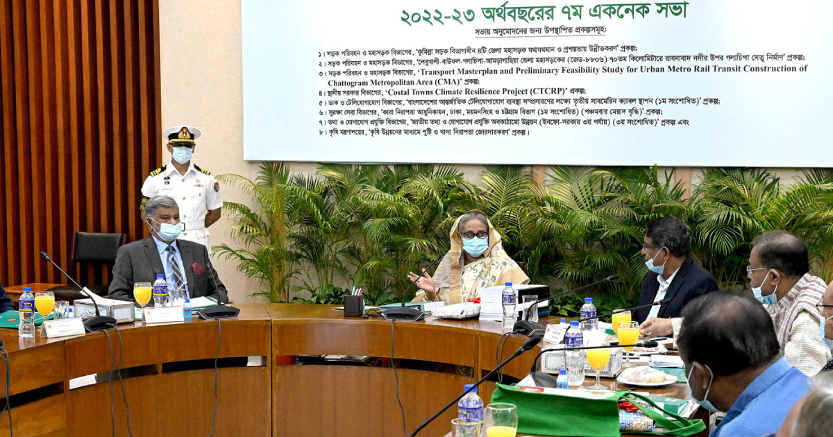 সাংবাদিকদের ব্রিফিংকালে পরিকল্পনামন্ত্রী এম এ মান্নান বলেন, বৈঠকে দুই হাজার ৫৮০ কোটি টাকার কোস্টাল টাউন ক্লাইমেট রেজিলিয়েন্ট প্রজেক্টের অনুমোদন দেয়ার সময় এই নির্দেশনা দেন।