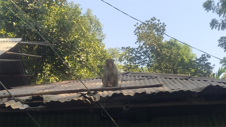 খাবারের সন্ধানে লোকালয়ে বানরের ছুটাছুটি
