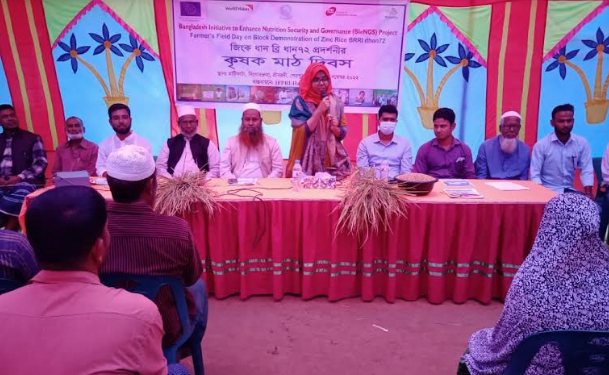 শেরপুরের শ্রীবরদীতে জিংক সমৃদ্ধ ব্রি ধান৭২ প্রদর্শনীর মাঠ দিবস অনুষ্ঠিত হয়েছে। রবিবার (২০ নভেম্বর) বিকালে উপজেলার সিংগাবরুনা ইউনিয়নের মাটিফাটা গ্রামে ইউরোপীয় ইউনিয়নের অর্থায়নে হারভেষ্টপ্লাস বাংলাদেশ কর্তৃক বাস্তবায়িত BIeNGS প্রকল্পের আওতায় জিংকের গুরুত্ব তুলে ধরে এক আলোচনা সভা অনুষ্ঠিত হয়। এতে প্রধান অতিথি হিসেবে বক্তব্য রাখেন উপজেলা কৃষি কর্মকর্তা সাবরিনা আফরিন , সিংগাবরুনা ইউনিয়ন পরিষদের চেয়ারম্যান ফখরুজ্জামানের সভাপতিত্বে কমিউনিটি এক্সটেনশন সুপারভাইজার মো. হুমায়ুন কবির ও মোঃ সাইফ ইসলামের সঞ্চালনায় বিশেষ অতিথি হিসাবে বক্তব্য রাখেন উপজেলা কৃষি সম্প্রসারণ কর্মকর্তা জনাব সাদিকুল হাসান স্বাক্ষর। মাঠ দিবসে জিংক সমৃদ্ধ ধান ব্রি ধান৭২ এর পুষ্টিগুণ ও জিংকের প্রয়োজনীয়তা তুলে ধরে বক্তব্য রাখেন হারভেষ্টপ্লাস বাংলাদেশ , BIeNGS প্রকল্পের প্রজেক্ট কোঅর্ডিনেশন কনসালট্যান্ট মোঃ সাইফুল ইসলাম। তিনি আরো বলেন শিশুদের দৈনিক ৩ – ৫ মিলিগ্রাম , নারীদের ৮ – ১২ মিলিগ্রাম , এবং পুরুষদের দৈনিক ১১ মিলিগ্রাম জিংকের প্রয়োজন হয়। ব্রিধান৭২ – এ ২২.৮ মিলিগ্রাম জিংক বিদ্যমান।এই জিংক সমৃদ্ধ ধান মানব দেহের জিংক ঘাটতি পূরণে সহায়ক ভূমিকা পালন করতে পারে। এসময় আরো বক্তব্য রাখেন উপ-সহকারী কৃষি কর্মকর্তা জনাব মোঃ লিটন মিয়া। এতে প্রায় দুই শতাধিক কৃষক কৃষাণি উপস্থিত ছিলেন। জিংক সমৃদ্ধ ধান ব্রি ধান৭২ এর ফলন বিঘা প্রতি ২০ – ২৫ মণ হয়। মাঠ দিবসে সকল কৃষক – কৃষাণিগণ জিংক সমৃদ্ধ ধান চাষ করার জন্য আগ্রহ প্রকাশ করেন।