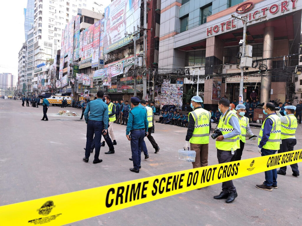 রাজধানীর নয়াপল্টনে বিএনপির কেন্দ্রীয় কার্যালয়ের সামনে বৃহস্পতিবার পুলিশের অপরাধ তদন্ত বিভাগের (সিআইডি) বোমা নিষ্ক্রিয়করণ ইউনিট অবস্থান নিয়েছে।