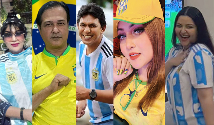 কাতার বিশ্বকাপ ফুটবলের উম্মাদনা ছড়িয়ে পড়েছে বিশ্বজুড়ে। বিশ্বকাপ উপলক্ষে বাংলাদেশ অতীতের মতোই স্পষ্ট দুটি শিবিরে বিভক্ত। কেউ সমর্থন করছেন আর্জেন্টিনা, আবার কেউ ব্রাজিল। দেশের শোবিজ অঙ্গনেও রয়েছে এই দুই দলের ভক্ত। গত শুক্রবার দুই দলের পৃথক খেলা ছিল। পাঁচবারের চ্যাম্পিয়ন ব্রাজিল ক্রোয়েশিয়ার কাছে হেরে কোয়ার্টার ফাইনাল থেকে বিদায় নেয়ায় বেদনায় নীল হয়েছেন ব্রাজিল সর্মথকগণ। অন্যদিকে নেদারল্যান্ডসকে হাড়িয়ে আর্জেন্টিনা সেমিফাইনালে ওঠায় আনন্দে ভাসছেন আর্জেন্টাইন সর্মথকগণ। এই তালিকায় রয়েছেন শোবিজ তারকারাও। নন্দিত অভিনেত্রী নূতন আর্জেন্টিনার সর্মথক। আর্জেন্টিনা বিশ্বকাপ জিতলে তিনি খাসি কেটে খাওয়ানোর ঘোষণা দেন। আর্জেন্টিনা সেমিফাইনালে ওঠায় উচ্ছ্বাস প্রকাশ করে এই অভিনেত্রী তার ফেসবুকে লিখেছেন: ‘কাল রাতে পেনাল্টি দেখার মতো সাহস বা মানসিক শক্তি আমার ছিলো না, তবে বিশ্বাস ছিলো সকালটা আমার জন্য ভালো সংবাদ বহন করবে। করেছেও। আর্জেন্টিনা বিশ্বকাপ পাবে, অন্তত মেসির জন্য পাওয়া উচিত। ভালোবাসা আর্জেন্টিনার প্রতি।’ অন্যদিকে আসিফ আকবর সবসময়ই ব্রাজিলের ফ্যান। প্রিয় দল ব্রাজিল নিয়ে নিয়মিত ফেসবুকে পোস্ট দিয়েছেন তিনি। কিন্তু গত শুক্রবার কোয়ার্টার ফাইনালে প্রিয় দল বিদায় নেয়ায় শোকে মুহ্যমান তিনি। গণমাধ্যমে কিছুটা ক্ষোভের সঙ্গে তিনি বলেন, ‘ফুটবল নিয়ে চার বছরে একবারই পাগল হই, পাগল চেতাবেন না, প্লিজ। আমাকে আমার পছন্দের দলটাকে সাপোর্ট করতে দিন, এটা আমার মৌলিক ফুটবলিক অধিকার। যে দলগুলো অন্তত তিনবার ওয়ার্ল্ড চ্যাম্পিয়ন হয়েছে, তাদের মতামত সাগ্রহে মেনে নেব। বাকিরা মিনিমাম জ্ঞানী হয়ে থাকলে ইতিহাস চর্চা করে মন্তব্য করুন। খেলা নিয়ে থাকি, খেলা উপভোগ করি। সফল হোক গ্রেটেস্ট শো অন আর্থ- দ্য ফিফা ওয়ার্ল্ড কাপ ২০২২। বি স্পোর্টিং, বি পজিটিভ, বি বাংলাদেশি, বি ব্রাজিলিয়ান। ভালোবাসা অবিরাম।’ হালের ক্রেজ পরীমণি আর্জেন্টনার অন্ধভক্ত। অন্যদিকে তার স্বামী শরীফুল রাজ ব্রাজিলের সর্মথক। গত শুক্রবার রাতে ম্যাচ শেষ হওয়ার পূর্বে সামাজিক যোগাযোগমাধ্যমে একটি পোস্ট দিয়েছিলেন পরী। ওই পোস্টে তিনি লিখেছেন, আজকে আর্জেন্টিনা জিতে গেলে আমি রাজের জন্যে ৭ দিন ব্রাজিলের জার্সি পরে ঘুরব, প্রমিস। সেই সঙ্গে ভালোবাসার কয়েকটি ইমোজিও জুড়ে দেন তিনি। এর আগে রাজকে ইঙ্গিত দিয়ে পরীমণি বলেছিলেন, আমার আর্জেন্টিনা ওয়ার্ল্ডকাপ নিলে তোমাকে (রাজ) নিয়ে আর্জেন্টিনাতেই যাব।’ ‘মুসাফির’খ্যাত চিত্রনায়িকা মারজান জেনিফার ব্রাজিলের কট্টর সর্মথক। অন্যদিকে তার স্বামী চলচ্চিত্র প্রযোজক জুবায়ের আলম আর্জেন্টিনার সর্মথক। ব্রাজিলের পরাজেয়ে কেঁদে 