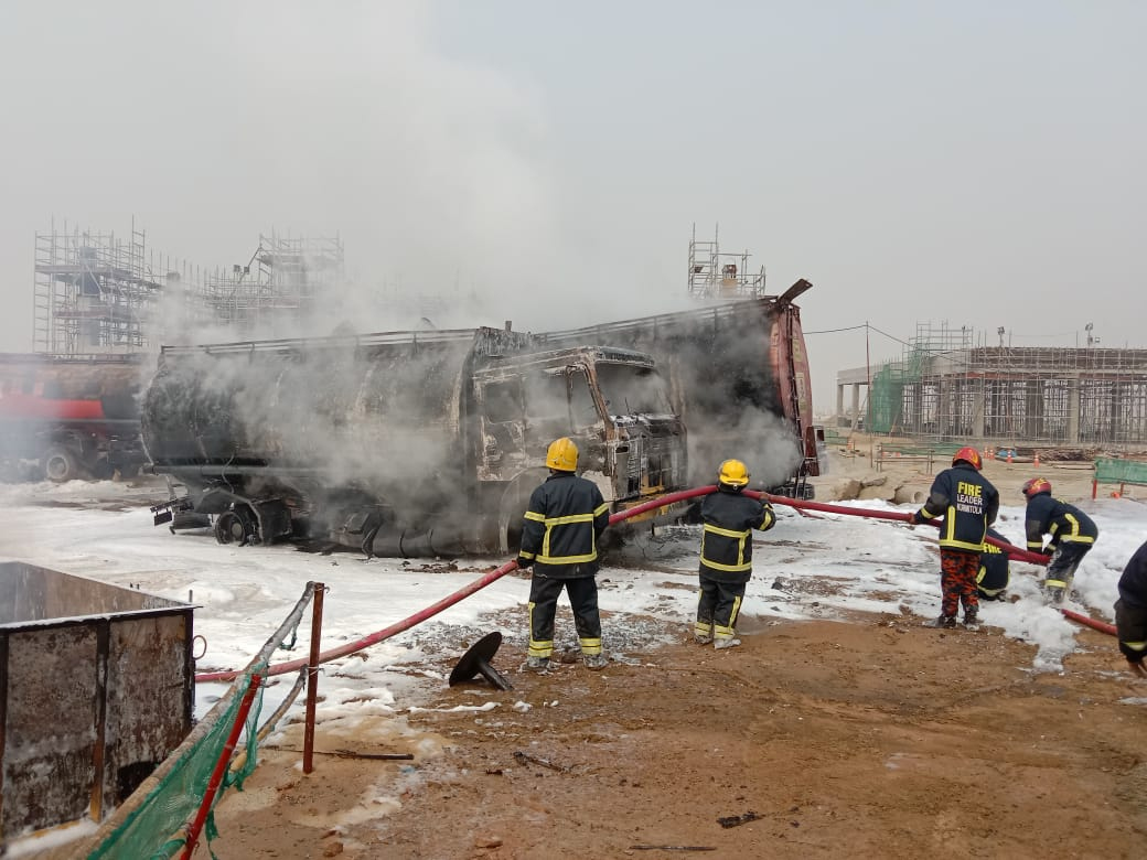 ফায়ার সার্ভিস অ্যান্ড সিভিল ডিফেন্স সদর দপ্তরের মিডিয়া সেলের উপ-সহকারী পরিচালক শাহজাহান শিকদার জানান, সকাল ১০টা ১২ মিনিটে দুটি তেলবাহী ট্যাংকার ট্রাকে আগুন লাগে।