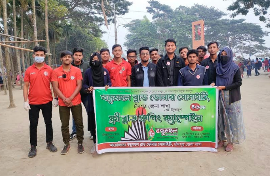 মহান বিজয় দিবস উপলক্ষে বন্ধুমহল ব্লাড ডোনার সোসাইটি এর উদ্যোগে একই সাথে ৪ জেলাতে ফ্রী ব্লাড গ্রুপিং ক্যাম্পেইন অনুষ্ঠিত হয়েছে। বন্ধুমহল ব্লাড ডোনার সোসাইটি ঝিনাইদহ জেলা শাখা, চট্টগ্রাম জেলা শাখা, ময়মনসিংহ জেলা শাখা এবং চাঁদপুর জেলা শাখার উদ্যোগে মহান বিজয় দিবসে জেলার বিভিন্ন স্থানে এই ফ্রি ব্লাড গ্রুপিং ক্যাম্পেইন অনুষ্ঠিত হয়, একটি প্রেস বিজ্ঞপ্তির মাধ্যমে জানা যায়।
