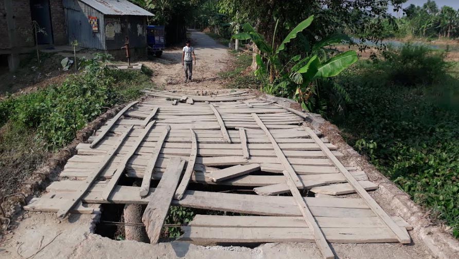 ডামুড্যা উপজেলা ইসলামপুর ইউনিয়নের গঙ্গেশকাটি গ্রামে জীবনের ঝুকি নিয়ে পারাপার করছে দুই গ্রামের মানুষ। যে কোন মুহূর্তে ঘটতে পারে এক বড় ধরনের দুঘর্টনা। জানা যায় ৭-৮ বছর যাবত ব্রীজটি পরে আছে জরাজীর্ণ অবস্থায়, নজরে আসে না কাউরো। সোমবার (১৯ ডিসেম্বর) ইসলামপুর, ধানকাটি, শরীয়তপুর রোডে সরেজমিনে দেখা গেছে যোগাযোগের ক্ষেত্রে এলাকাবাসী দুভোর্গের চিত্র। এই খালের উপরে নতুন ব্রীজ নির্মাণ না হলে কৃষি নির্ভর এলাকাবাসী উৎপাদিত ফসলের ন্যায্য মূল্য থেকে বঞ্চিত হচ্ছে দীর্ঘ দিন ধরে। পথচারীরা জানান শরীয়তপুর তথা রাজধানীর ঢাকার সঙ্গে যোগাযোগের সহজ রাস্তা হচ্ছে এটি, ইসলামপুর ধানকাটি রোড গুরুত্বপূর্ণ এই সড়কে আশে পাশের বহু শিক্ষা প্রতিষ্ঠান ইউনিয়ন পরিষদ স্বাস্থ্য উপকেন্দ্র কমিনিউটি ক্লিনিক হাটবাজারসহ বিভিন্ন স্থাপনা রয়েছে। শরীয়তপুর জেলাসহ বিভিন্ন জেলার হাজার হাজার লোকজন এই রাস্তা দিয়ে চলাচলা করে আসছে। ইসলামপুর ইউনিয়নের গঙ্গেশকাটি খালের উপরে জরাজীর্ণ ব্রীজটি নতুন করে নির্মাণের এলাকাবাসী দীর্ঘদিনের দাবী। উপজেলা এলজিডির প্রকৌশলী আবু নাঈম নাবিল বলেন, উক্ত ব্রীজের প্রাক্কলন MSRDP প্রকল্পে প্রেরণ করা হয়েছে। অনুমোদন পাওয়া গেলে কাজ শুরু হবে।