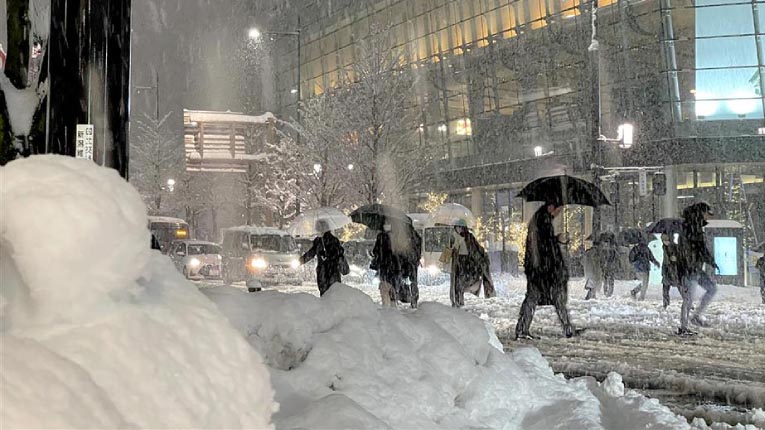 তীব্র তুষারপাতে বিপর্যস্ত হয়ে পড়েছে জাপানের জনজীবন। বৈরী আবহাওয়ার কারণে দেশটির উত্তরাঞ্চলে ভ্রমণে সতর্কতা জারি করা হয়েছে। বন্ধ রয়েছে যান চলাচল। ট্রেন চলাচলেও দেখা দিয়েছে শিডিউল বিপর্যয়। বার্তা সংস্থা সিনহুয়া জানায়, তুষারপাতের কারণে মঙ্গলবার (২০ ডিসেম্বর) রাস্তায় বের হয়ে ভোগান্তিতে পড়েন জাপানের সাধারণ মানুষ। দেশটির বিভিন্ন শহরে ট্রেন চলাচলে দেখা দেয় শিডিউল বিপর্যয়। কাক্সিক্ষত গন্তব্যে পৌঁছাতে গিয়ে পড়তে হয় চরম ভোগান্তিতে। বিভিন্ন স্টেশনে ঘণ্টার পর ঘণ্টা অপেক্ষা করতে হয় তাদের। শুধু ট্রেনেই নয়, গণপরিবহনের অবস্থাও শচনীয়। বৈরি আবহাওয়ার কারণে বিভিন্ন মহড়াসড়কে দেখা দিয়েছে ব্যাপক ভোগান্তি। বাস স্টেশনে গিয়েও হতাশ হন যাত্রীরা। কোনো কোনো রাস্তায় গাড়ি চলাচল করলেও, ধীরগতির কারণে দেখা দেয় তীব্র যানজট। এ অবস্থায় জাপানের উত্তরাঞ্চলে ভ্রমণে সতর্কতা জারি করেছে কর্তৃপক্ষ। রাস্তায় যান চলাচল স্বাভাবিক রাখতে বরফ সরানোর কাজ করছেন কয়েকশ’ কর্মী। জাপানের আবহাওয়া বিভাগ বলছে, দেশটিতে আরও বেশ কয়েকদিন তীব্র তুষারপাত অব্যাহত থাকতে পারে। এ অবস্থায় জরুরি প্রয়োজন ছাড়া ঘর থেকে বের না হওয়ার পরামর্শ দেয়া হয়েছে। তীব্র ঠান্ডার কারণে সবচেয়ে বেশি ভোগান্তিতে পড়েছেন বয়স্করা।