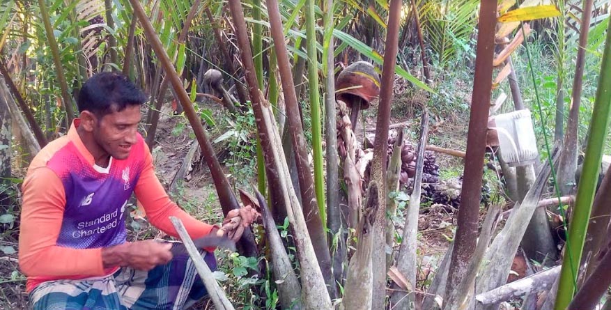 নবীপুর গ্রামে গোল গাছ চাষি নিঠুর হাওলাদার বলেন, তার বাগানে ৩০০ শতাধিক গোলের ছড়া হয়েছে। সূর্য ওঠার সাথে সাথে তিনি কলস নিয়ে বেড়িয়ে পড়েন বাগানে। শুরু হয় প্রতিটি গাছ থেকে রস সংগ্রহের কাজ। এভাবেই প্রতিদিন দুই দফা রস সংগ্রহ ও ছড়া কাটতে হয় তার। চৈত্র মাস পর্যন্ত চলবে এ কর্মযজ্ঞ। একই গ্রামের পরিমল হাওলাদার বলেন, ছোট ছোট হাঁড়ি অথবা প্লাস্টিকের পাত্রে ফোটা ফোটা জমানো রস দিয়ে তৈরি হয় গুড়। গোলগাছের গুড়ের স্থানীয় বাজারে ব্যাপক চাহিদা রয়েছে। গত বছরের চেয়ে তার বাগনে এ বছর ফলন ভাল হয়েছে। ২৫০ টি ছড়া বর্তমানে ৭ কলশ রসে প্রায় ১১ কেজি গুড় তৈরি হয়। মনোজ শিকারি বলেন, ৩০০ ছড়ার মধ্যে এ পর্যন্ত ১০০ থেকে ১৫০ ছড়া কাটতে পেড়েছেন। বাকিগুলো কয়েক দিনের মধ্যে কাটা শুরু করবেন বলে তিনি জানান।