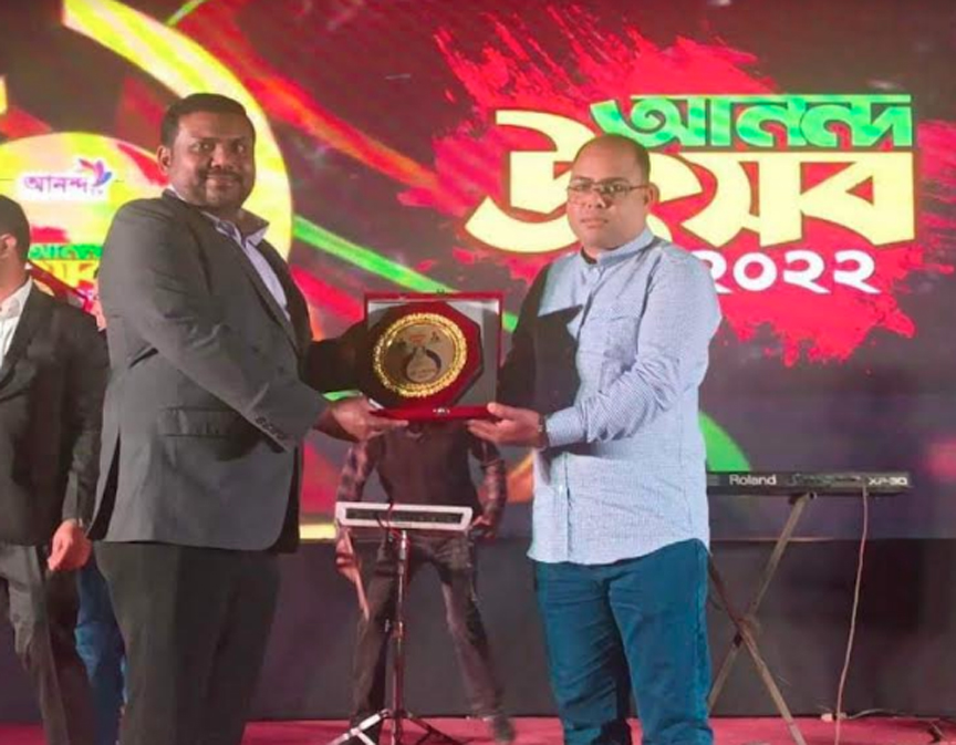 পরে প্রতিনিধি ওমর ফারুক সুমনের হাতে সম্মাননা ক্রেস্ট তুলে দেন আনন্দ ঊৎসবের প্রধান অতিথি আনন্দ টিভির ব্যবস্থাপনা পরিচালক হাসান তৌফিক আব্বাস। এ সময় আনন্দ টিভির এইচ আর এডমিন সাইফুল ইসলাম, আনন্দ টিভির বার্তা বিভাগের ন্যাশনাল ডেস্ক ইনচার্জ ও সিনিয়র নিউজ প্রেজেন্টার মোস্তফা কামাল তোহা, আনন্দ টিভির ব্যবস্থাপনা পরিচালক হাসান তৌফিক আব্বাসের ব্যক্তিগত সহকারী জাহিদ হাসানসহ অন্যান্য কর্মকর্তাবৃন্দ উপস্থিত ছিলেন।