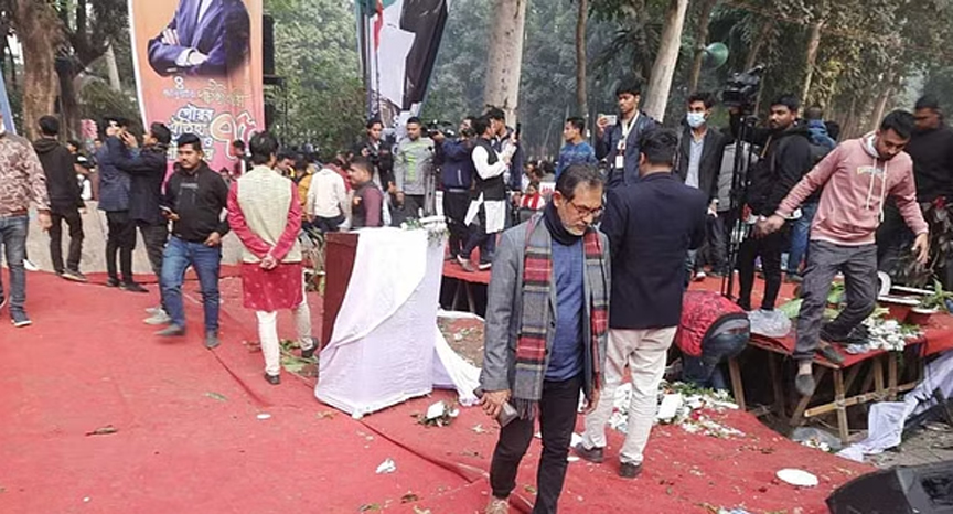 শুক্রবার বিকালে সোয়া ৪টার দিকে ঢাকা বিশ্ববিদ্যালয়ের অপরাজেয় বাংলার পাদদেশে এ ঘটনা ঘটে। অতিরিক্ত মানুষ ওঠায় মঞ্চ ভেঙে পড়ে বলে নেতাকর্মীদের ধারণা, খবর বিডি নিউজ ২৪ ডটকমের।