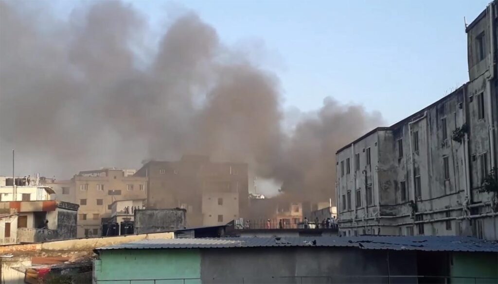 আগ্রাবাদ ফায়ার সার্ভিস কন্ট্রোল রুম কর্মকর্তা ফজলুল কাদের জানান, বিকাল ৩টা ৩৫ মিনিটে রেয়াজুদ্দিন বাজার সংলগ্ন নূপুর মার্কেটের সপ্তম তলায় একটি জুতার কারখানায় আগুন লেগেছে। আমাদের আটটি ইউনিট ঘটনাস্থলে পৌঁছে আগুন নেভানোর কাজ করছে।
