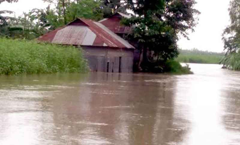 নীলফামারীতে অবিরাম বর্ষণ ও পাহাড়ি ঢলে তিস্তা নদীর পানি বিপৎসীমার ১০ সেন্টিমিটার ওপর দিয়ে প্রবাহিত হচ্ছে। রোববার সকাল থেকে নদী অববাহিকার নিম্নাঞ্চল প্লাবিত হয়েছে। ডিমলা ডালিয়া পানি উন্নয়ন রোর্ডের বন্যা পূর্বাভাস ও সর্তকীকরণ কেন্দ্র জানায়, সকাল ৬টা থেকে তিস্তা নদীর পানি ডালিয়া পয়েন্টে বিপৎসীমার ২ সেন্টিমিটার (৫২.৭৫) নিচ দিয়ে প্রবাহিত হয়েছিল। ওই পয়েন্টে বিপৎসীমা ৫২.৬০ সেন্টিমিটার। আবার বিকাল ৩টায় ওই পানি বেড়ে ১০ সেন্টিমিটার ওপর দিয়ে প্রবাহিত হচ্ছে। পাউবোর গেজ পাঠক (পানি পরিমাপক) মো. নুরুল ইসলাম বিষয়টি নিশ্চিত করে বলেন, ‘গত শুক্রবার থেকে পানি বাড়া-কমা করছে।’ সূত্র জানায়, দুপুর ১২টা পর্যন্ত একই লেভেলে তিস্তা নদীর পানি প্রবাহিত হওয়ায় জেলার ডিমলা, জলঢাকা এবং লালমনিরহাট জেলার কালিগঞ্জ, হাতিবান্ধা উপজেলার তিস্তা নদী অববাহিকার চর গ্রামসহ নিম্নাঞ্চল প্লাবিত হয়। ডিমলা উপজেলার কিছামত ছাতনাই, ঝাড় শিঙ্গেশ্বর, চর খড়িবাড়ি, পূর্ব খড়িবাড়ি, পশ্চিম খড়িবাড়ি, তিস্তা বাজার, তেলির বাজার, বাইশ পুকুর, ঝুনাগাছচাঁপানীর ছাতুনামা কেল্লাপাড়া, ভেন্ডাবাড়ি, প্লাবিত হয়েছে। এদিকে, স্থানীয় জনপ্রতিনিধিরা জানান, জলঢাকা উপজেলার গোলমুন্ডা, ডাউয়াবাড়ি, শৌলমারী এলাকার পরিস্থিতি খারাপ হওয়ায় সেখানকার মানুষজন গরু-ছাগল নিয়ে নিরাপদে সরে গেছেন। বন্যায় প্রায় ১০ হাজার পরিবার বন্দি হয়ে পড়েছে। তিস্তার চরাঞ্চলের প্রতিটি বাড়ি কোমর থেকে হাঁটুপানিতে তলিয়ে গেছে। কারও বাড়িতে রান্না করে খাবার কোনও উপায় নেই। জরুরিভাবে শুকনো খাবার বিতরণ প্রয়োজন বলে তারা প্রশাসনের হস্তক্ষেপ কামনা করেছেন। উপজেলার ঝুনাগাছ চাপানি ইউনিয়নের চেয়ারম্যান আমিনুর রহমান বলেন, ‘উজানের পাহাড়ি ঢলে বন্যার পানি প্রবেশ করায় ছাতুনামা কেল্লাবাড়ি, ভেন্ডাবাড়ি এলাকার পাঁচ শতাধিক পরিবার পানিবন্দি হয়েছে।’ পূর্ব ছাতনাই ইউনিয়নের চেয়ারম্যান আবদুল লতিফ খান জানান, উজানের ঢল বাংলাদেশে প্রবেশ করায় এবার ভয়ঙ্কর বন্যা হতে পারে বলে ধারণা করা হচ্ছে। একই উপজেলার খগাখড়িবাড়ি ইউনিয়নের চেয়ারম্যান রবিউল ইসলাম লিথন বলেন, ‘একদিকে ভারতের উজানের পানি, অন্যদিকে অবিরাম বৃষ্টি হওয়ায় মানুষজন চরম দুর্ভোগে পড়েছেন। গরু-ছাগল, হাঁস-মুরগি সরিয়ে নিতে বাধ্য হচ্ছে। উপজেলার কিসামত ছাতনাই গ্রামের প্রতিটি বাড়িতে হাঁটু থেকে কোমর পানিতে তলিয়ে গেছে।’ ডালিয়া পানি উন্নয়ন বোর্ডের নির্বাহী প্রকৌশলী আসফাউদৌলা বলেন, ‘গত শুক্রবার থেকে পরিস্থিতি নিয়ন্ত্রণে আনতে তিস্তা ব্যারাজের ৪৪টি স্লুইচ গেট (জলকপাট) খুলে রাখা হয়েছে। আশা করি দ্রুত এই পানি নেমে যাবে।’ ডিমলা উপজেলা নির্বাহী কর্ম