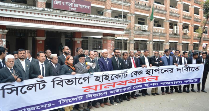 সিলেটে হাইকোর্ট বেঞ্চ স্থাপনের দাবিতে মানববন্ধন