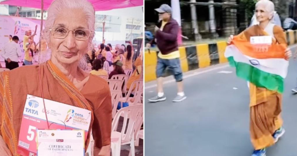 বয়সকে বুড়ো আঙ্গুল দেখিয়ে মুম্বাই ম্যারাথনে শাড়ি পরে দৌড়ালেন ৮০ বছরের ভারতী