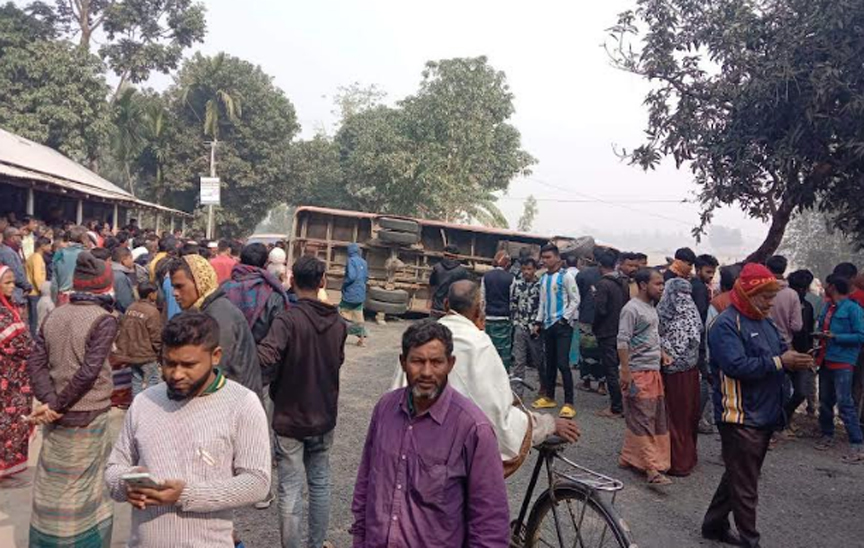 গাইবান্ধায় বাস উল্টে নিহত১, আহত ১২