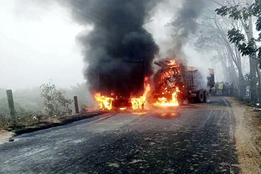 সিলেটে ২ ট্রাকের মুখোমুখি সংঘর্ষ, একটিতে আগুন লেগে হেলপারের মৃত্যু