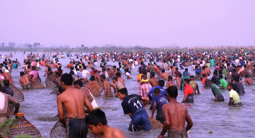 জৈন্তাপুরে হরুজুরী বিলে পলো বাওয়া উৎসব পালিত