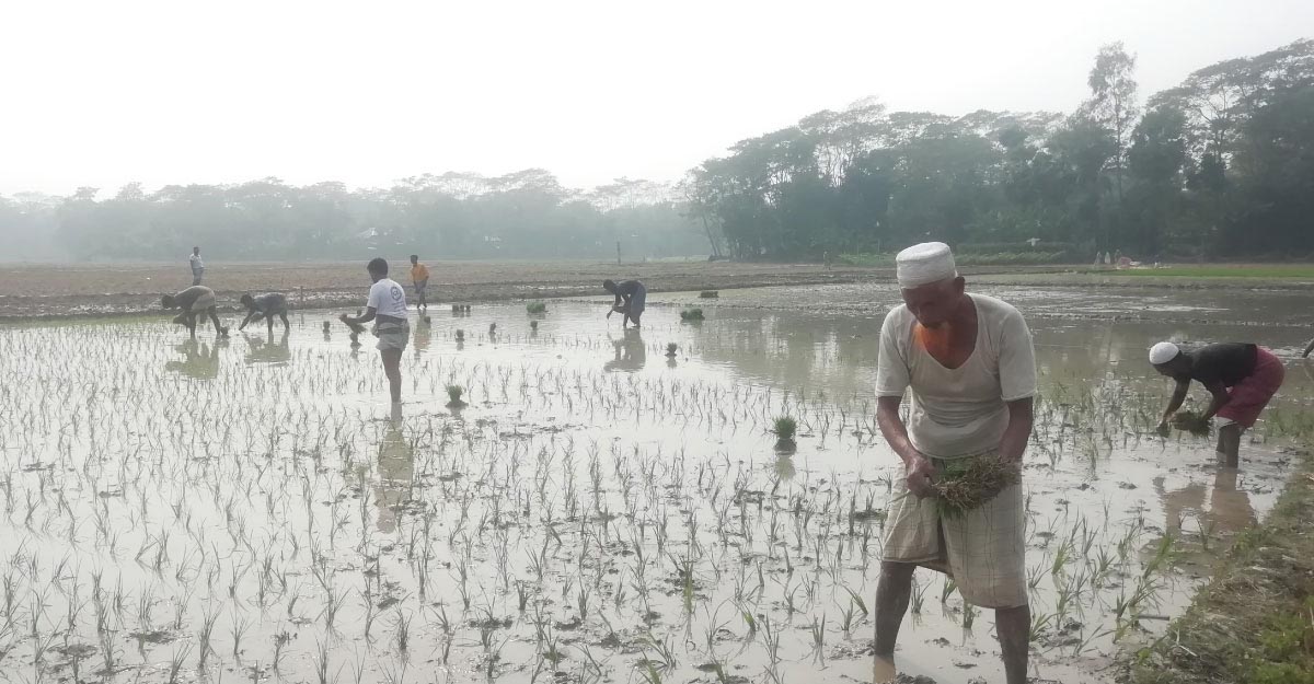 কৃষক বারেক মিয়া জানান, তিনি তিন একর জমিতে চারা রোপণ করেছেন। নিজেই ধানের চারা বীজতলা থেকে উঠিয়েছেন।