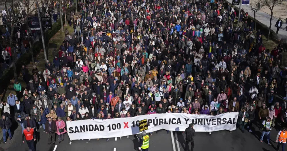 স্পেনের মাদ্রিদে রাজধানীর স্বাস্থ্যসেবা পরিষেবাগুলো আঞ্চলিক সরকারের ব্যবস্থাপনায় দেয়ার বিরুদ্ধে হাজার হাজার মানুষ বিক্ষোভ করছে। এতে মানুষের ব্যাপক উপস্থিতির কারণে এটি সবচেয়ে বড় বিক্ষোভে রূপ নিয়েছে।
