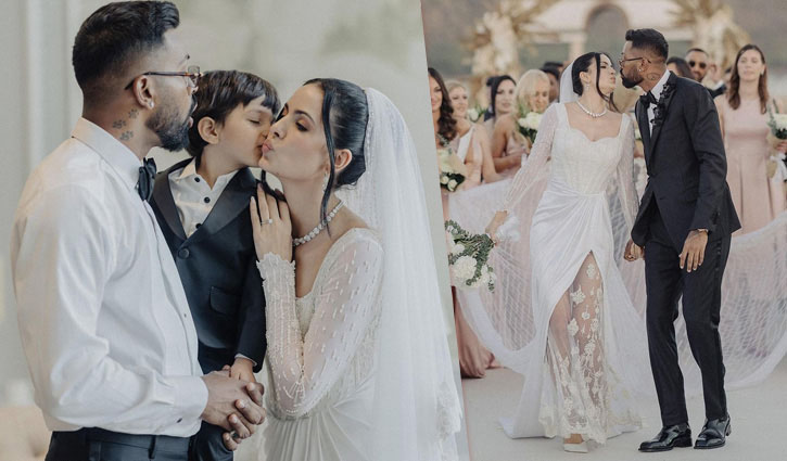 বলিউড অভিনেত্রী নাতাশা স্ট্যানকোভিচ। প্রায় তিন বছর আগে ভারতের অলরাউন্ডার হার্দিক পান্ডিয়াকে বিয়ে করেন তিনি। তাদের সংসার আলো করে জন্ম নিয়েছে একটি পুত্রসন্তান। কিন্তু পুত্রকে কোলো নিয়ে ফের বিয়ের পিঁড়িতে বসলেন এই দম্পতি। ইন্ডিয়া টুডে এক প্রতিবেদনে জানিয়েছে, গত মঙ্গলবার ছিল বিশ্ব ভালোবাসা দিবস। এদিন উদয়পুরে বসেছিল এই তারকা জুটির বিয়ের আসর। এ সময় বর-কনের পরিবারের সদস্য ও ঘনিষ্ঠ বন্ধু-বান্ধবরা উপস্থিত ছিলেন। বিয়ের বেশ কিছু ছবি প্রকাশ্যে এসেছে। তাতে দেখা যায়, নাতাশার পরনে সাদা রঙের গাউন, অন্যদিকে হার্দিকের পরনে স্যুট-কোট। একটি ছবিতে দেখা যায়, পুত্রকে কোলে নিয়ে আছেন বর হার্দিক। বাবার কোলে বসে মা নাতাশাকে চুমু খাচ্ছে ছেলে। এসব ছবি ইনস্টাগ্রামে পোস্ট করে হার্দিক লিখেছেন- ‘তিন বছর আগে আমরা যে, শপথ নিয়েছিলাম তা এই দ্বীপে নবায়ন করলাম এবং ভালোবাসা দিবস উদযাপন করলাম। আমাদের ভালোবাসা উদযাপনের সঙ্গী হয়ে আশীর্বাদ করেছেন আমাদের পরিবার ও বন্ধুরা। এজন্য আমরা সত্যি ধন্য।’ একটি সূত্র হিন্দুস্তান টাইমসকে বলেন, ‘এর আগে কোর্টে বিয়ে করেন হার্দিক-নাতাশা। ওই সময়ে খুব তাড়াহুড়ো করে আইনি বিয়ে সারেন তারা। এজন্য জমকালো আয়োজনে বিয়ে করলেন তারা।’ ১৩-১৬ ফেব্রুয়ারি পর্যন্ত বিয়ের আনুষ্ঠানিকতা চলবে। গায়েহলুদ, সংগীত অনুষ্ঠানেরও আয়োজন করা হয়। গত বছরের নভেম্বর থেকে এই বিয়ের প্রস্তুতি শুরু হয়েছে বলেও সূত্রটি জানিয়েছেন। ২০২০ সালের শুরুতে নাতাশা স্ট্যানকোভিচকে দুবাইয়ের মাঝ সমুদ্রে ফ্লোটিং বোটে প্রোপোজ করেন হার্দিক। এরপর আংটি পরিয়ে বাগদান সারেন। করোনা সংকটের কারণে ভারতে তিন মাসের বেশি সময় লকডাউন ছিল। এ সময়ে হার্দিকের সঙ্গে তার বাড়িতেই ছিলেন নাতাশা। লকডাউনের সময়ে হার্দিকের বাড়িতেই বিয়ের অনুষ্ঠান সেরেছিলেন বলে জানা যায়।