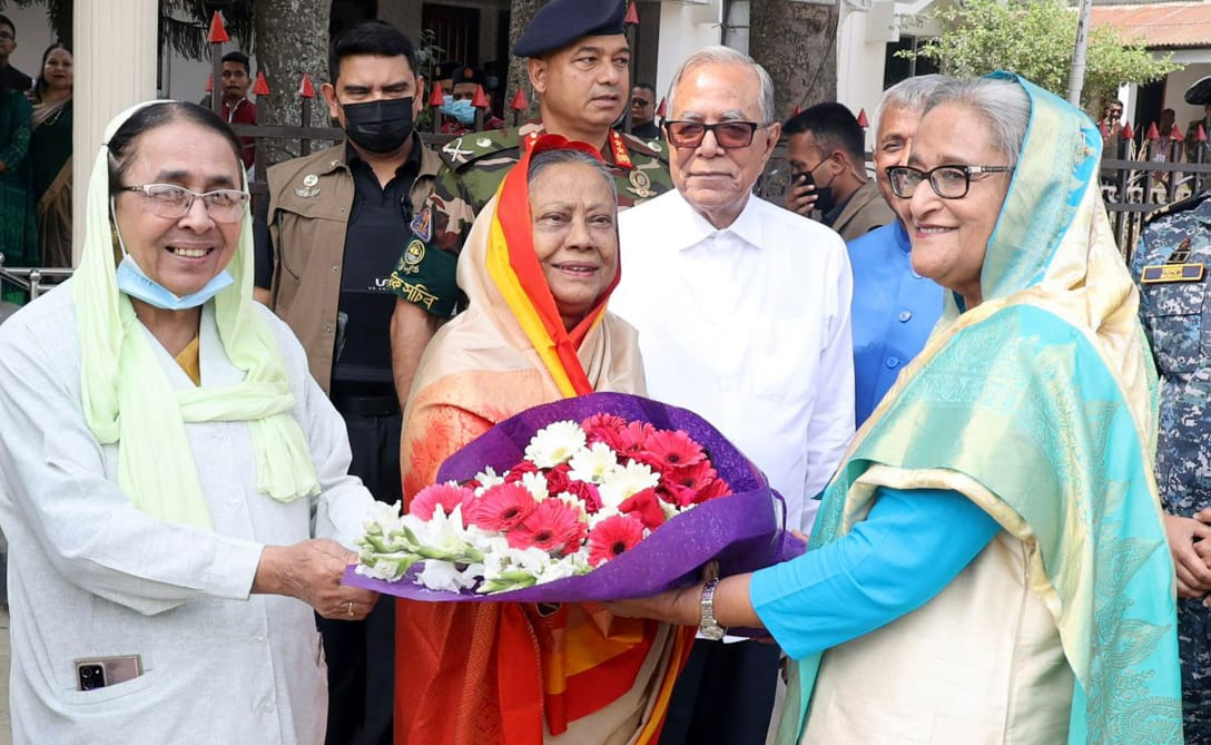 মঙ্গলবার বেলা ১১টা ৫ মিনিটে ‘বীর মুক্তিযোদ্ধা আবদুল হামিদ সেনানিবাস’ উদ্বোধনের পর মধ্যাহ্নভোজের জন্য রাষ্ট্রপতির পৈত্রিক বাড়িতে যান শেখ হাসিনা।