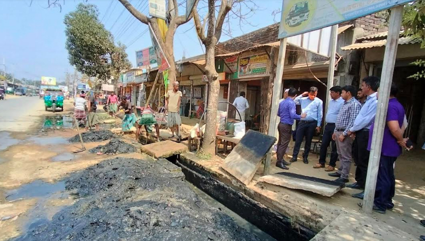 এমন দূর্ভোগের অবস্থা জানতে পেরে উপজেলা নির্বাহী অফিসার মো. ফারুক আল মাসুদ এর নির্দেশে মঙ্গলবার (২৮ ফেব্রুয়ারি) বাজারের প্রধান সড়ক, মসজিদ সড়ক ও ধানহাটি সড়কের ড্রেনেজ ব্যবস্থা পরিষ্কারের কার্যক্রম শুরু করা হয়। পরে পরিচ্ছন্ন কর্মীদের কাজ পরিদর্শনে আসেন উপজেলা নির্বাহী অফিসার মো. ফারুক আল মাসুদ, প্রকল্প বাস্তবায়ন কর্মকর্তা মো. আব্দুল মান্নান, সদর ইউপি চেয়ারম্যান আলহাজ্ব মো. শাহাদাৎ হোসেন, ক্ষুদ্র বনিক সমিতির সভাপতি ও ইজারাদার আলহাজ্ব মো. মোখলেছুর রহমান খান, সদর ইউপি সদস্য মো. জাহিদুল হক মনির, শিক্ষক রুস্তম আলীসহ আরও গন্যমান্য ব্যাক্তি ও স্থানীয় সাংবাদিকগণ।