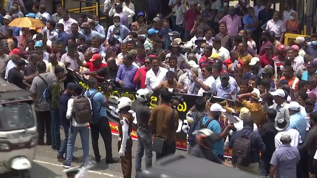দেশ দেউলিয়া হয়ে পড়েছে। নিত্যপ্রয়োজনীয় অনেক কিছ্ইু এখন আর হাতের নাগালে নেই। তার উপর প্রতিনিয়ত বাড়ছে জীবনযাত্রার ব্যয়। যার প্রতিবাদে গত বুধবার ধর্মঘট করেছেন শ্রীলঙ্কার সরকারি হাসপাতাল, ব্যাংক ও বন্দরের কর্মীরা। কেউ কেউ সড়কে নেমে বিক্ষোভ করেছেন। কেউ কেউ কালো পোশাক পরে কর্মস্থলে গিয়ে প্রতিবাদ জানিয়েছেন, যে দলে দেশটির শিক্ষকরাও ছিলেন। স্বাধীনতার পর সবচেয়ে ভয়াবহ আর্থিক সংকটের মধ্য দিয়ে যাচ্ছে শ্রীলঙ্কা। দেশটিতে মূল্যস্ফীতির হার এখন ৫০ শতাংশের বেশি। বৈদেশিক মুদ্রার রিজার্ভ নেই। শ্রীলঙ্কার মুদ্রার ব্যাপক দরপতন হয়েছে এবং দেশটিতে মারাত্মক মন্দা চলছে। আন্তর্জাতিক মুদ্রা তহবিল (আইএমএফ) থেকে শ্রীলঙ্কা সরকার ২৯০ কোটি মার্কিন ডলার ঋণ সহায়তা পেতে গত বছল সেপ্টেম্বর মাস থেকে চেষ্টা করছে। কিন্তু এজন্য দেশটিকে বেশ কিছু শর্ত পূরণ করতে হবে। যে শর্ত পূরণের লক্ষ্যে শ্রীলঙ্কা সরকার এ বছর আয়কর ৩৬ শতাংশের বেশি বাড়িয়েছে। বিদ্যুতের শুল্কও দুইতৃতীয়াংশ বাড়ানো হয়েছে। সরকারি বিভিন্ন সেক্টরের শ্রমিক ইউনিয়ন থেকে একটি ন্যায্য কর ব্যবস্থা চালুর আহ্বান জানানো হয়েছে। এদিন, শ্রীলঙ্কার বাণিজ্যিক রাজধানী কলম্বোতে প্রায় দুই হাজার বন্দরকর্মী মধ্যাহ্নভোজের বিরতির সময় শ্রমিক ইউনিয়নের ওই দাবির প্রতি সমর্থন জানিয়ে বিক্ষোভ করেন। দ্য পোর্টস ট্রেড ইউনিয়ন অ্যালায়েন্স এর আহ্বায়ক নিরোশান গোরাকানাগে সাংবাদিকদের বলেন, ‘‘আমরা বিক্ষোভ করছি কারণ আমাদের বেঁচে থাকাটা দিন দিন কঠিন হয়ে পড়ছে। ‘‘এই আয়কর বিল অবশ্যই প্রত্যাহার করে নিতে হবে। না হলে এই সরকার কিভাবে আরো বিপদে পড়ে সেটা আমরা দেখে নিবে।” এদিন অনেক সরকারি কার্যালয়ে কর্মীরা কালো পোশাক পরে কাজে গেছেন। হাতে কালো ব্যান্ড পরেছেন এবং ভবনে কালো পতাকা উড়িয়েছেন। ব্যাংক খাতের ট্রেড ইউনিয়নগুলো ধর্মঘটে যোগ দেওয়ায় বুধবার শ্রীলঙ্কার বেশিরভাগ ব্যাংক বন্ধ ছিল। সরকারি হাসপাতালগুলোতে নার্সরা চার ঘণ্টার ধর্মঘট পালন করেন। চিকিৎসকরাও ধর্মঘটে যোগ দেন। শ্রীলঙ্কার প্রেসিডেন্ট রনিল বিক্রমাসিংহে গত সপ্তাহে পার্লামন্টে বলেছিলেন, আইএমএফ ঋণের শর্তাবলীর অধীনে সরকারের আয় বাড়াতে কর সংস্কারের প্রয়োজন ছিল।